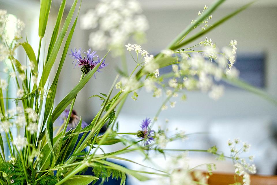 Die hell und hochwertig eingerichtete Ferienwohnung "Wasser" befindet sich im Erdgeschoss des Plus Energiehauses, seitlich des Dreiseithofes. Die Wohnung ist barrierefrei, etwa 96 qm groß. Sie verfügt über zwei Schlafzimmer mit metallfreien Biobetten in Extralänge (210cm). Die Bettdecken sind mit fairer Biobettwäsche in 150x 220cm bezogen. Im Bad befindet sich eine große Familiendusche, die auch mit Rolli befahrbar ist. Der große, helle Wohnraum bietet einen Panoramablick über Wiesen und Felder. Eine offene, gut ausgestattete Küche in skandinavischem Stil ist hier integriert. Die Terrasse lädt zum Entspannen und Verweilen ein.