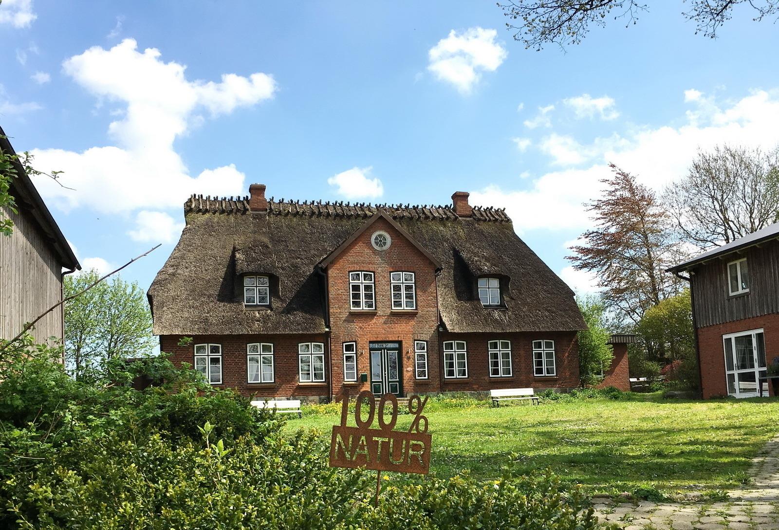 Klimapositiv übernachten auf einem historischen Angeliter Dreiseitenhof aus dem 18. Jahrhundert. Auf dem idyllischen Hof befindet sich die ökologische Pension mit Ferienwohnungen.