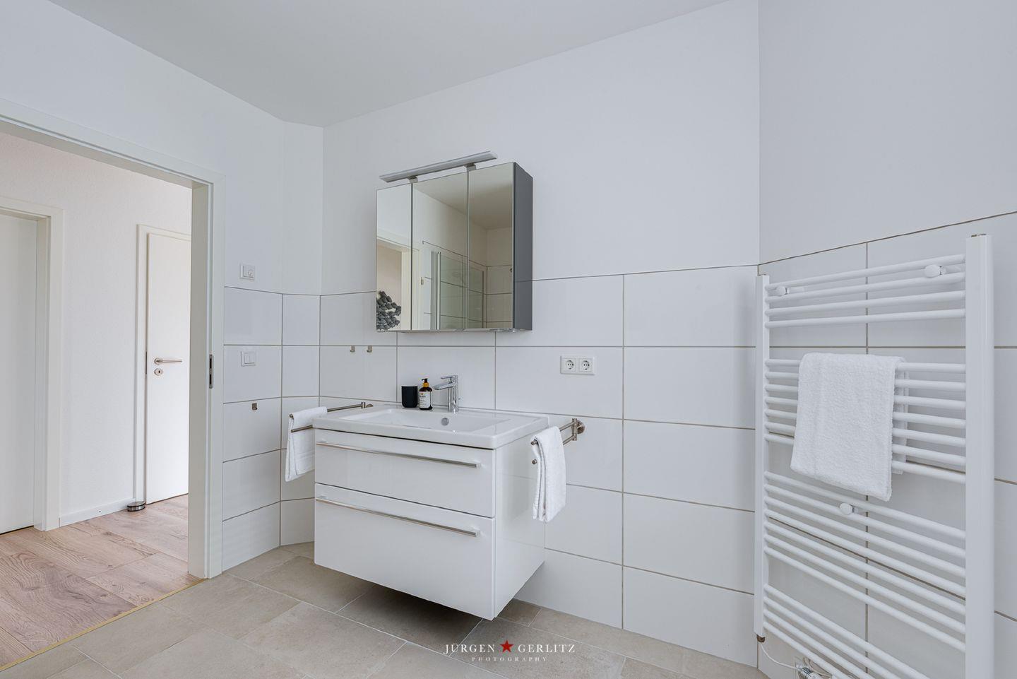 Die bodentiefen Fenster in Wohn- und Schlafbereichen spenden viel Sonnenlicht. Die vollausgestattete Küche mit Essplatz ist zum Wohnbereich hin offen. Die Terrasse mit Garten bietet Ihnen einen Grill und ist möbliert. Das 1. Schlafzimmer verfügt über ein Boxspring-Doppelbett, das 2. Schlafzimmer verfügt über 2 Einzelbetten. Das Badezimmer ist einer ebenerdigen Dusche ausgestattet. Darüber hinaus steht Ihnen ein Gäste-WC zur Verfügung.