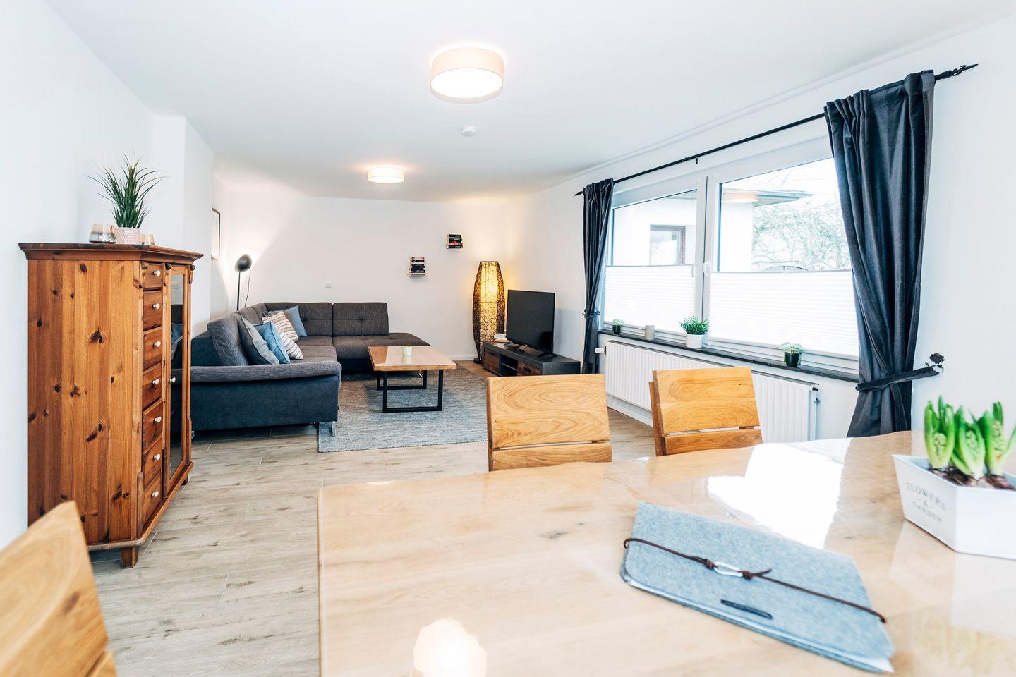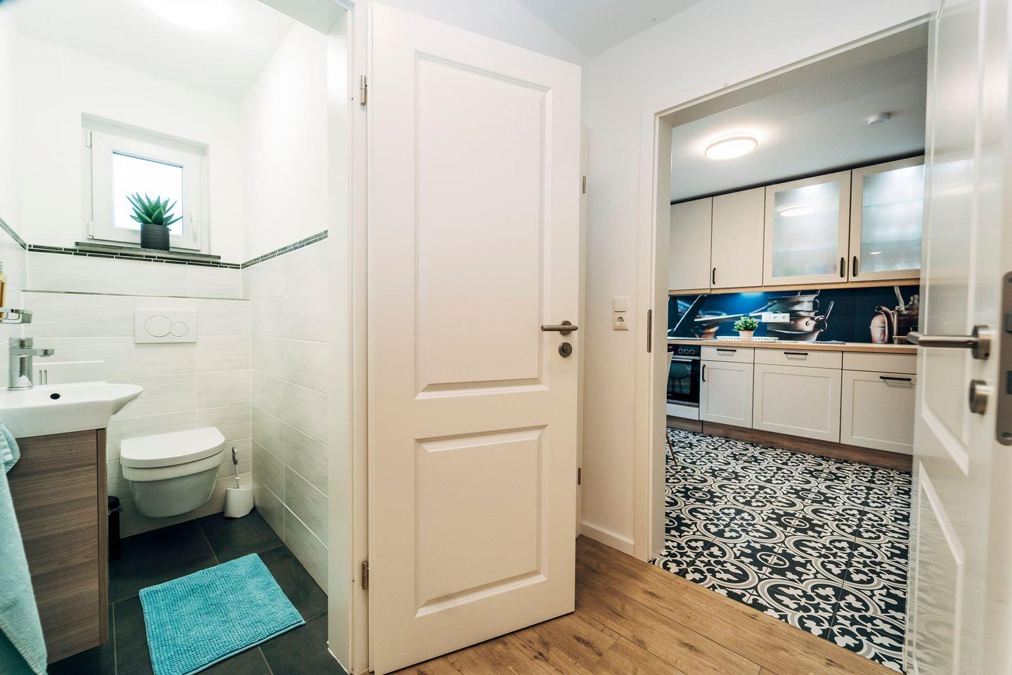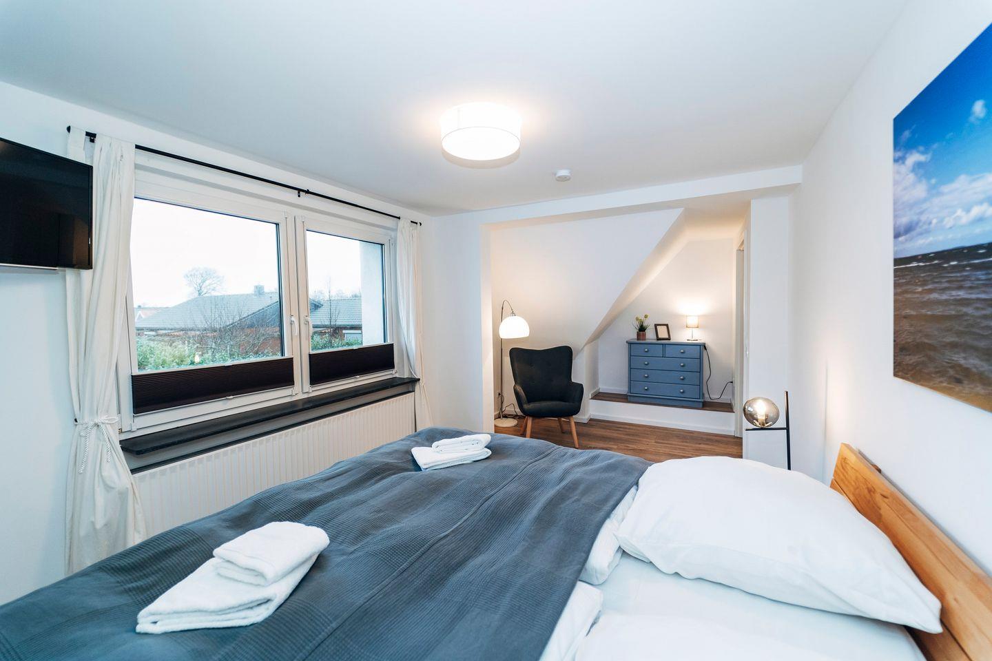 Das vollausgestattete Ferienhaus "Waterkant" hat eine Größe von ca. 90m² und bietet Platz für 4 Personen und 3 Kindern. Es erstreckt sich auf zwei Etagen und fußläufig erreichen Sie einen wundervollen Ostsee-Sandstrand. Die stilvolle Küche bietet eine qualitativ hochwertige Ausstattung und einen Esstisch. Das gemütliche Wohnzimmer mit Essbereich für alle Gäste lädt zu geselligen Spieleabende mit den hauseigenen Spielen ein. Machen Sie es sich auf dem Sofa bequem und schauen Sie einen unterhaltsamen Film auf dem Flachbild-Fernseher oder lesen Sie eines der hauseigenen Bücher. Das moderne Tageslichtbad ist mit einer ebenerdigen Dusche und einem Föhn ausgestattet. In diesem Raum befindet sich kein WC. Das WC ist in einem separaten Raum vorhanden. Im Obergeschoss befindet sich die beiden Schlafzimmer. Das eine Schlafzimmer ist mit einem King-Size Doppelbett (200x200cm) und einer Kommode ausgestattet. In dem anderen Schlafzimmer befinden sich ebenfalls ein King-Size Doppelbett (200x200cm) und noch ein Etagenbett. In dem unteren Teil (140x200cm) können zwei Kinder schlafen und oben ist Platz für ein weiteres Kind (90x200cm). Ein Rausfallschutz ist zusätzlich nutzbar und sorgt für die Sicherheit der kleinen Gäste beim Schlafen. Beide Schlafzimmer sind zudem mit Verdunkelungsmöglichkeiten, einem Lesesessel und einem Flachbild-Fernseher ausgestattet. Im Flur ist für alle Gäste eine Möglichkeit vorhanden, um Kleidung und Gepäck unterzubringen. Für die kleinen Gäste sind ein Hochstuhl, ein Kinderreisebett und ein Kindertritthocker vorhanden. Zum Ferienhaus gehört ein großer Garten, sowie eine sichtgeschützte Terrasse. Genießen Sie beim Frühstück die frische Ostseeluft oder verbringen Sie unvergessliche Grillabende. Unter dem Sonnenschirm können Sie auf den Sonnenliegen entspannt die Sommertage verbringen. An kühleren Tagen steht Ihnen eine eigene finnische Sauna zur Verfügung, die im Schuppen untergebracht ist. Vor der Unterkunft steht Ihnen ein kostenloser Stellplatz für einen PKW zur Verfügung. Weitere Fahrzeuge können auf dem öffentlichen Parkplatz parken, der wenige Meter vom Haus entfernt ist. Ihre Fahrräder können Sie im abschließbaren Schuppen unterstellen. Hier befindet sich zudem eine Möglichkeit um E-Bikes zu laden. Am nahe gelegenen Strand befindet sich ein öffentlicher Spielplatz. Auch eine Surfschule ist am Strand ansässig und ermöglicht Ihnen einen erlebnisreichen Urlaub. Das Ferienhaus "Waterkant" ist der perfekte Ausgangsort für Ihren Strandurlaub, Wassersport oder ausgedehnte Spaziergänge durch das Naturschutzgebiet der Geltinger Birk.