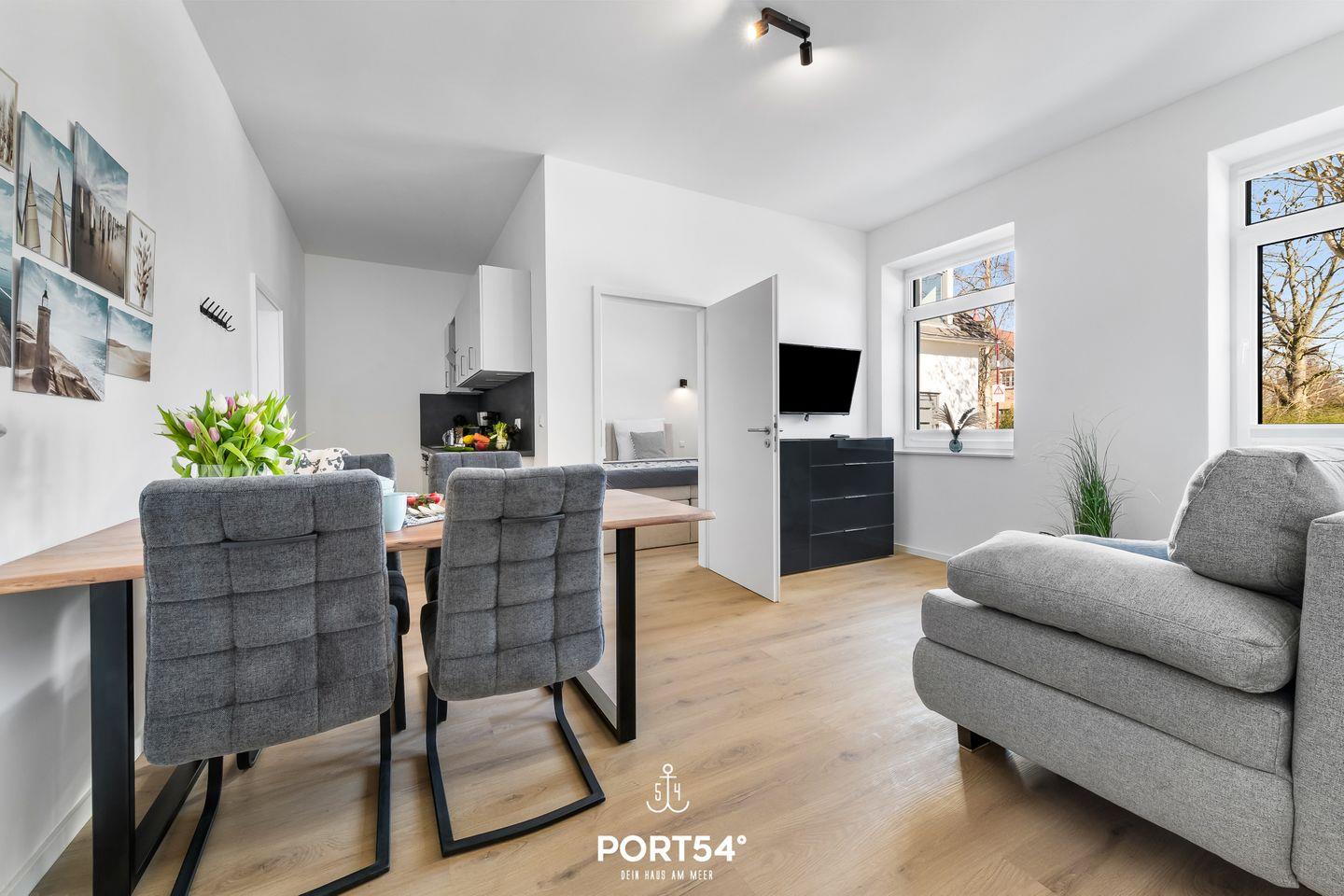 Die kernsanierte Ferienwohnung "Strandläufer" bietet auf 35m² einen offenen Wohnbereich mit integrierter Küchenzeile und Essbereich, ein Schlafzimmer und ein Duschbad. Vom Wohnbereich aus lässt sich die möblierte Terrasse betreten. Laue Sommerabende lassen sich hier perfekt am Weber-Elektrogrill verbringen. Im Schlafzimmer steht ein Boxspring-Doppelbett. Zwei weitere Schlafplätze bietet die gemütliche Schlafcouch. Am Haus befindet sich ein gemeinschaftlicher Abstellraum für Fahrräder.