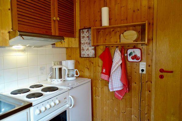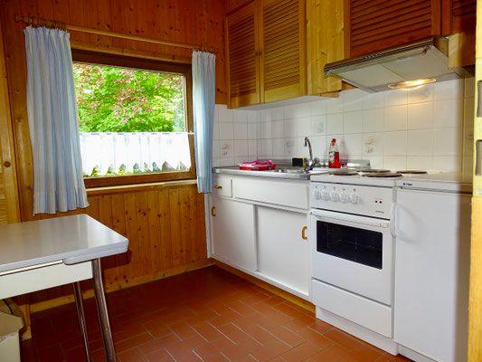 Die Küche verfügt über Herd, Backofen, Kühlschrank sowie eine gute Ausstattung an Kochutensilien, Geschirr und praktischen Geräten wie Toaster und Kaffeemaschine – ideal für gemeinsame Mahlzeiten.