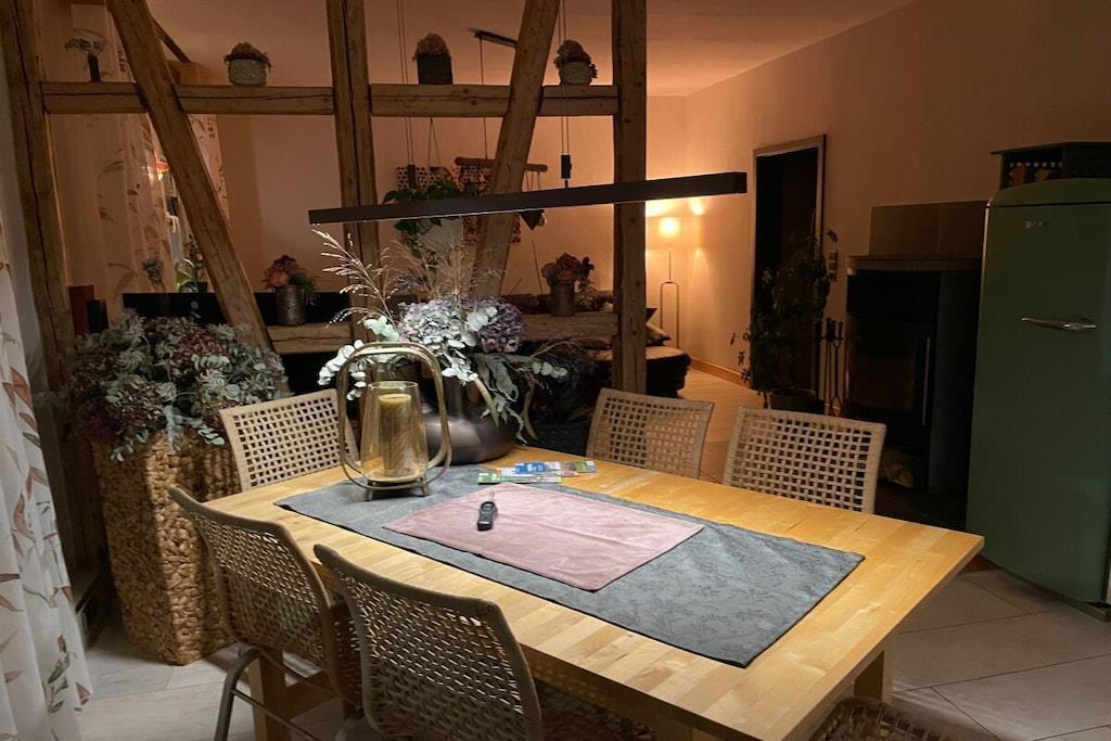 Neu renovierte, sehr gemütliche Ferienwohnung Place to Be mit TOP Hygienekonzept im Herzen des Thüringer Waldes, unweit des berühmten Höhenweges Rennsteig, der viel Raum für Erholung und Entspannung bietet und zugleich der ideale Ausgangsort für zahlreiche Freizeitaktivitäten ist. Ob Outdoorliebhaber, Kulturfreund, geschichtlich interessiert... es ist für jeden etwas geboten. Das TOP Hygienekonzept wurde entwickelt um auch höchsten Ansprüchen an Sauberkeit und Hygiene gerecht zu werden. Unsere Gäste sollen sich bei uns wie zu Hause fühlen. Dieses Haus ist ein wunderbarer Platz, um die Seele baumeln zu lassen. Es wurde mit sehr viel Liebe zum Detail eingerichtet. Wer nach einem ereignisreichen Tag in der Natur die Akkus in gemütlicher Umgebung und absoluter Ruhe wieder aufladen möchte, ist hier genau richtig. Bei der Planung der Ferienwohnung haben wir den Fokus auf Komfort, Gemütlichkeit, Entspannung und Wohlbefinden gelegt. Jeder Raum wurde mit viel Liebe zum Detail eingerichtet. Unsere Gäste sollen sich bei uns wie zu Hause und von der ersten Minute an willkommen fühlen. Unser Hygienekonzept gibt euch die Garantie, dass jedes Kopfkissen, jede Bettdecke, jedes Sofakissen, jeder Läufer und auch die Outdoorwäsche... nach jedem Gast bei 60°C gewaschen wird (nicht nur die Bezüge). Familien mit Kindern sind bei uns herzlich Willkommen. Für die Kleinen gibt es in unserem großen Garten immer etwas zu entdecken. Dabei haben die Eltern vom Liegestuhl aus, auf der zum Garten gehörenden Terrasse, alles im Blick. Warum diese Gegend In dieser Gegend und speziell in diesem Haus fand ein großer Teil unseres Familienlebens statt. Wir verbinden mit diesem Haus wunderschöne Erinnerungen, tolle Erlebnisse und viele erholsame Stunden. Für unsere Kinder war es ein Platz an dem sie sehr gerne mit ihren Großeltern ihre Schulferien verbracht haben. Das was uns alle hier verbindet nennt man glaub WURZELN ;-). Ihr werdet es spüren wenn ihr uns besuchen kommt. Es ist nicht nur irgendeine Ferienwohnung. Es ist Herzblut. Die Umgebung ist geprägt durch Natur Pur. Wald, Berge, gepflegte Wanderwege, Ausflugsziele mit und ohne geschichtlichen Hintergrund sind Bestandteil und machen den Urlaub zu einem Erlebnis. Dieses Haus ist ein wunderbarer Platz um die Seele baumeln zu lassen. Es wurde mit gaaaanz viel Liebe zum Detail eingerichtet. Der Focus bei der Gestaltung lag auf den Aspekten Gemütlichkeit, Wohlbehagen, Rückzug und den Charakter dieses 1906 gebauten Hauses zu erhalten. Hier triff MODERN auf ALT und BEWÄHRT. Dieses Haus darf sich sogar Niedrigenergiehaus nennen. Über uns Wir (Wolfram, Kathi, Christian und Isabell) sind in diesem besinnlichen, kleinen Ort geboren und vermieten das EG im Elternhaus meines Mannes an euch. Die obere Wohnung ist unserer Familie vorbehalten. Beruflich und privat hat sich die Familie an diversen Orten in Deutschland und Österreich niedergelassen. Uns alle, inklusiv der Partner unserer Kinder, verbindet die Natur und damit verbunden die sportlichen Aktivitäten, wie zum Beispiel wandern, Mountainbiken sowie Wintersport jeglicher Art. Wir haben mit unserem „Place to Bee“ einen zentralen Platz innerhalb Deutschlands geschaffen, der sich hervorragend als Familientreffpunkt eignet. Es ist unsere Insel. Wir verbringen sehr gerne gemeinsame Zeit in dem Haus, sofern es unsere Zeit zulässt. Da die Familie bis vor kurzem Imkerei betrieben hat, lag es nahe, die Wohnung als "Place to Bee" (englisch für Biene) zu bezeichnen ... also kein Schreibfehler ;-) Dieses Haus wurde bereits zu DDR Zeiten an Feriengäste vermietet. Diese Tradition haben wir fortgeführt, weil wir mit Leib und Seele Gastgeber sind: - wir lieben DIVERS - wir mögen Menschen - wir sind offen für NEUES - wir stehen für Qualität - wir versuchen euch jeden Wunsch zu erfüllen Überzeugt euch selbst. Wir freuen uns schon jetzt euch eines Tages in unserer Ferienwohnung begrüßen zu dürfen. Allgemein Internet und kostenfreies WLAN sind vorhanden, ebenso zwei Stellplätze direkt vor der Haustür. Ein wettergeschützter Raum für Sportgeräte und Lademöglichkeiten für E-Bike Akkus steht zur Verfügung. Die Wohnung befindet sich im Erdgeschoss und ist rollstuhlgerecht gestaltet. Für Kinder steht auf Anfrage kostenlos diverses Equipment bereit (z.B. Reisebett, Hochstuhl, Stufe für Waschbecken, Töpfchen, Toilettensitz). Eine spezielle Lademöglichkeit für Elektrofahrzeuge ist nicht vorhanden. Outdoorbereich Grillplatz, ausgestattet mit einem Holzkohle Webergrill und einem Kaminofen für die etwas kühleren Abende. Je eine Sitzecke im Freien sowie im überdachten Bereich mit gemütlichen Sesseln und Hockern, laden nach einem ereignisreichen Tag bei jeder Witterung zum Entspannen und Erholen ein. Im überdachten Bereich der Terrasse gibt es außerdem einen Kühlschrank, eine Nespresso Kaffeeemaschine und ein Cerankochfeld (gegen eine Kaution von 100 Euro in bar). Ausschließlich im Outdoorbereich darf geraucht werden. Ferienwohnung Flur Der Flurbereich bietet jede Menge Platz für Schuhe, Jacken, Schirme und sonstiges Equipment und verbindet den Wohn-/ Essbereich mit zwei der insgesamt drei vorhandenen Schlafzimmer sowie einem der zwei Bäder. Schlafzimmer In jedem der drei Schlafzimmer befindet sich ein Flachbild TV, ein Kleiderschrank mit sehr viel Stauraum und einer ausreichenden Anzahl Kleiderbügel sowie diversen Aufbewahrungsboxen. Außerdem verfügt jedes Schlafzimmer über eine gemütliche Theke mit zwei Barhockern. Die Fenster sind mit blickdichten Faltrollos, Verdunkelungsvorhängen sowie Fliegengittern ausgestattet. Jeder Raum ist abschließbar. Für Kinder gibt es höchstens 4 Schlafmöglichkeiten. 2 der 3 Schlafzimmer eignen sich um Kinderbetten auf zu stellen. Nach Bedarf der Kinder (Körpergröße, Gewicht) kann zwischen 2 Etagenbetten, 2 Kinderbetten oder 2 Reisebetten gewählt werden. Kombinationen sind ebenfalls möglich Wohn-/ Essbereich Im Wohnbereich ist ein gemütlich