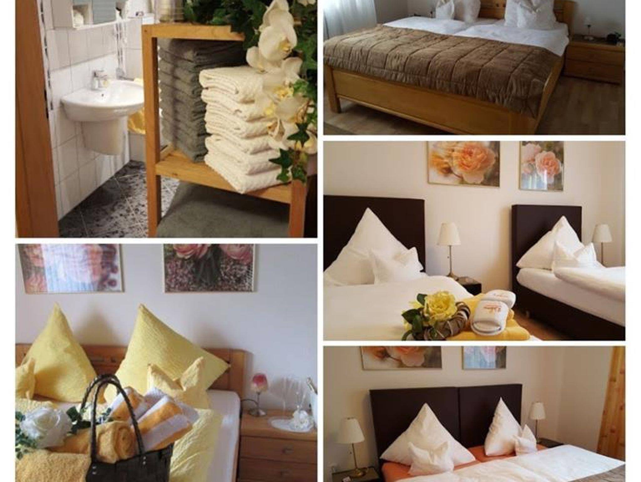 1 Schlafzimmer mit Doppelbett (180×200 cm) zwei getrennten Matratzen, 3-Türen-Kleiderschrank. Geschmeidige Einziehdecken mit kuschelweicher Füllung, auch für Hausstauballergiker geeignet. Auf Wunsch kann ein Kinder/Reisebett mit Bettwäsche zugestellt werden.
