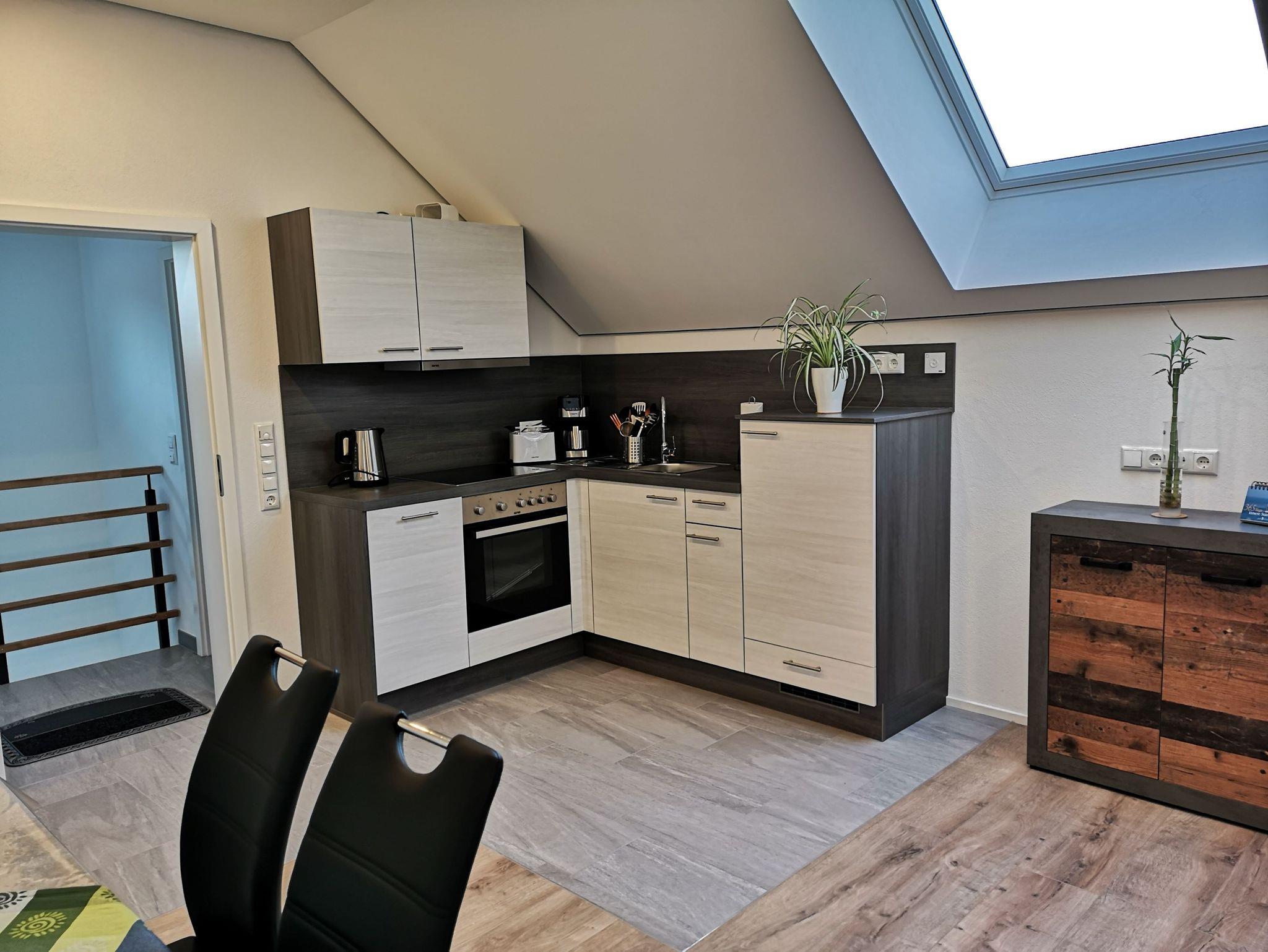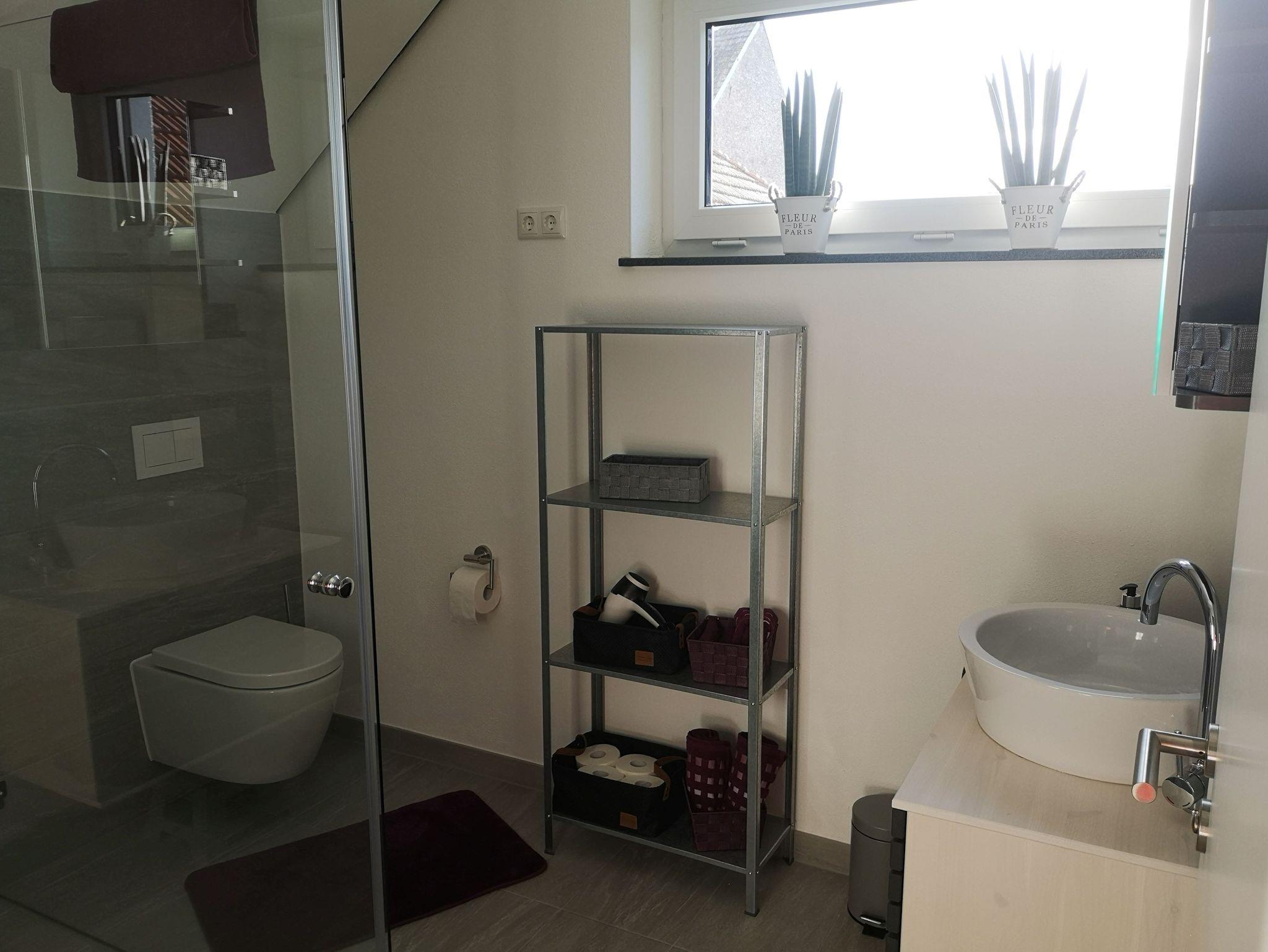 Die Ferienwohnung mit 65m² befindet sich im ersten Stock und bietet Platz für 1-4 Personen (Monteure max. 2 Personen) Das gemütliche Wohnzimmer mit Schlafcouch, Kuscheldecken und eine Wärmflasche lädt zum Verweilen ein. Die komplett neu ausgestattete Küche mit Geschirrspüler, Kühlschrank, Herd, Mikrowelle, Wasserkocher, Kaffeemaschine, Eierkocher, Toaster, Mixstab lässt keine Wünsche offen. Das Ferienhaus verfügt über 2 Schlafzimmer mit Doppelbetten 180cm x 200cm und 160cm x 200cm. Ein Kinderreisebett und ein Hochstuhl kann auf Wunsch gerne zur Verfügung gestellt werden. Das hochwertig, modern eingerichtete Bad hat eine begehbare Glasdusche mit Rainshower, WC, Föhn und einem Designwaschtisch mit Spiegelschrank. Abstellmöglichkeiten für Waschutensilien sind vorhanden. Handtücher und Bettwäsche werden zur Verfügung gestellt. Bücher, Zeitschriften, Rätselhefte und CDs laden zur Entspannung ein. Vor allem im Sommer kann der Außenbereich mit Sitzmöglichkeiten genutzt werden. Ein Unterstellplatz für Fahrräder ist vorhanden. Bitte beachten Sie, das keine Haustiere erlaubt sind. Das WLAN und der Parkplatz vor dem Haus sind kostenfrei. Nichtraucherhaus.