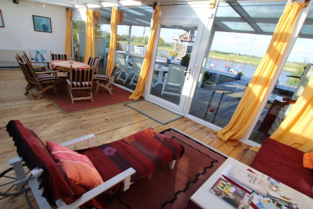 Vakantie aan de Oste, een grote zijrivier van de Elbe, 28km van Cuxhaven, in ruime, lichtovergoten kamers met uitzicht op het rivierlandschap.