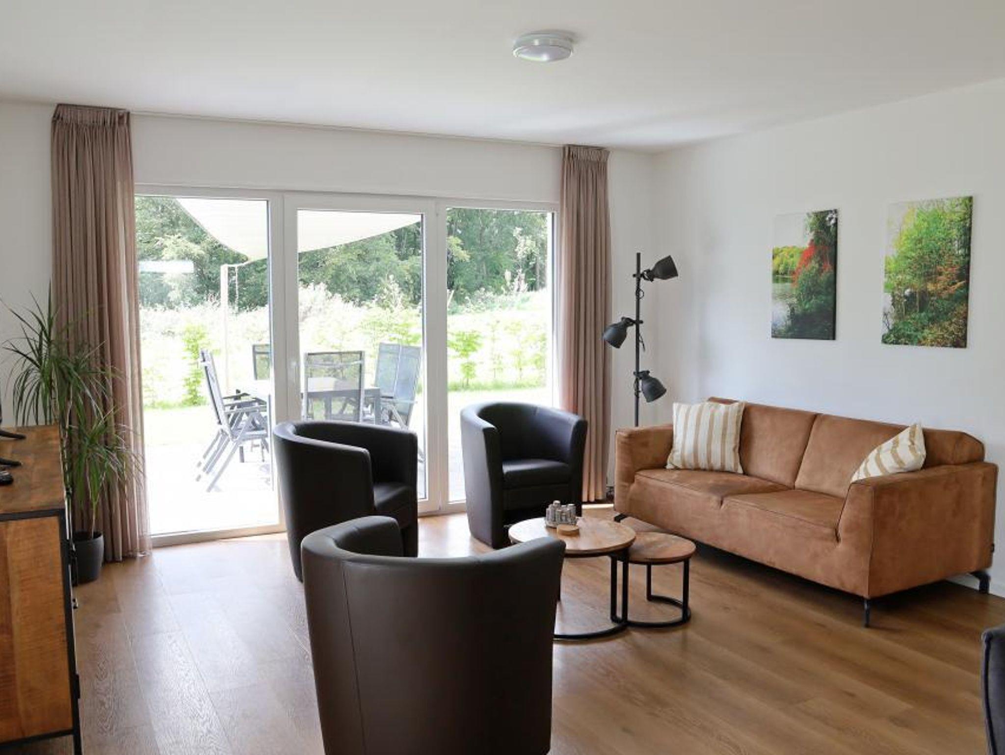 Das Wohnzimmer verfügt über eine Sitzecke mit einem geräumigen 2,5-Sitzer-Sofa, drei Sesseln, Flachbild-TV und einem großen Esstisch für 6 Personen. Für eine perfekte Temperatur im Haus ist das gesamte Haus mit einer Fußbodenheizung ausgestattet. Der Essbereich verfügt über einen geräumigen Esstisch mit 6 Stühlen, an dem Sie eine köstliche Mahlzeit genießen können. Die Terrasse ist durch die Terrassentüren zugänglich. Auf der Terrasse steht ein Esstisch und 6 Stühle.