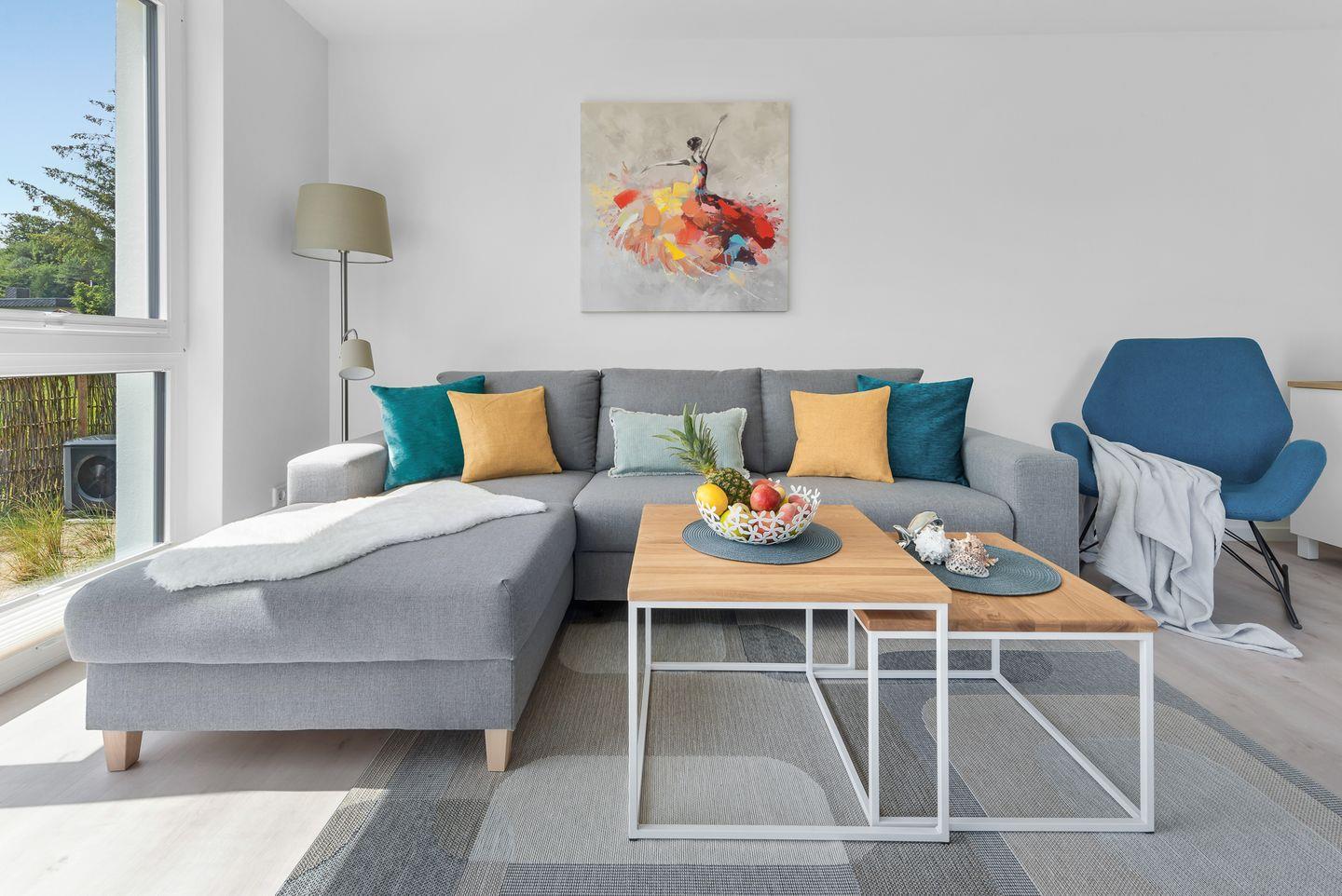 Die modern eingerichtete Doppelhaushälfte mit 85 m² bietet Dir Platz für bis zu 5 Personen. Im offen gestalteten Wohn- und Essbereich mit voll ausgestatteter Küche und einem Schlafsofa kannst Du es Dir gemütlich machen. Beide Schlafzimmer befinden sich im Souterrain des Hauses, eines ist mit einem Doppelbett und eines mit zwei Einzelbetten eingerichtet. Das moderne Badezimmer verfügt über eine ebenerdige Dusche. Das Highlight ist die große Dachterrasse mit einem Panoramablick auf die Ostsee.