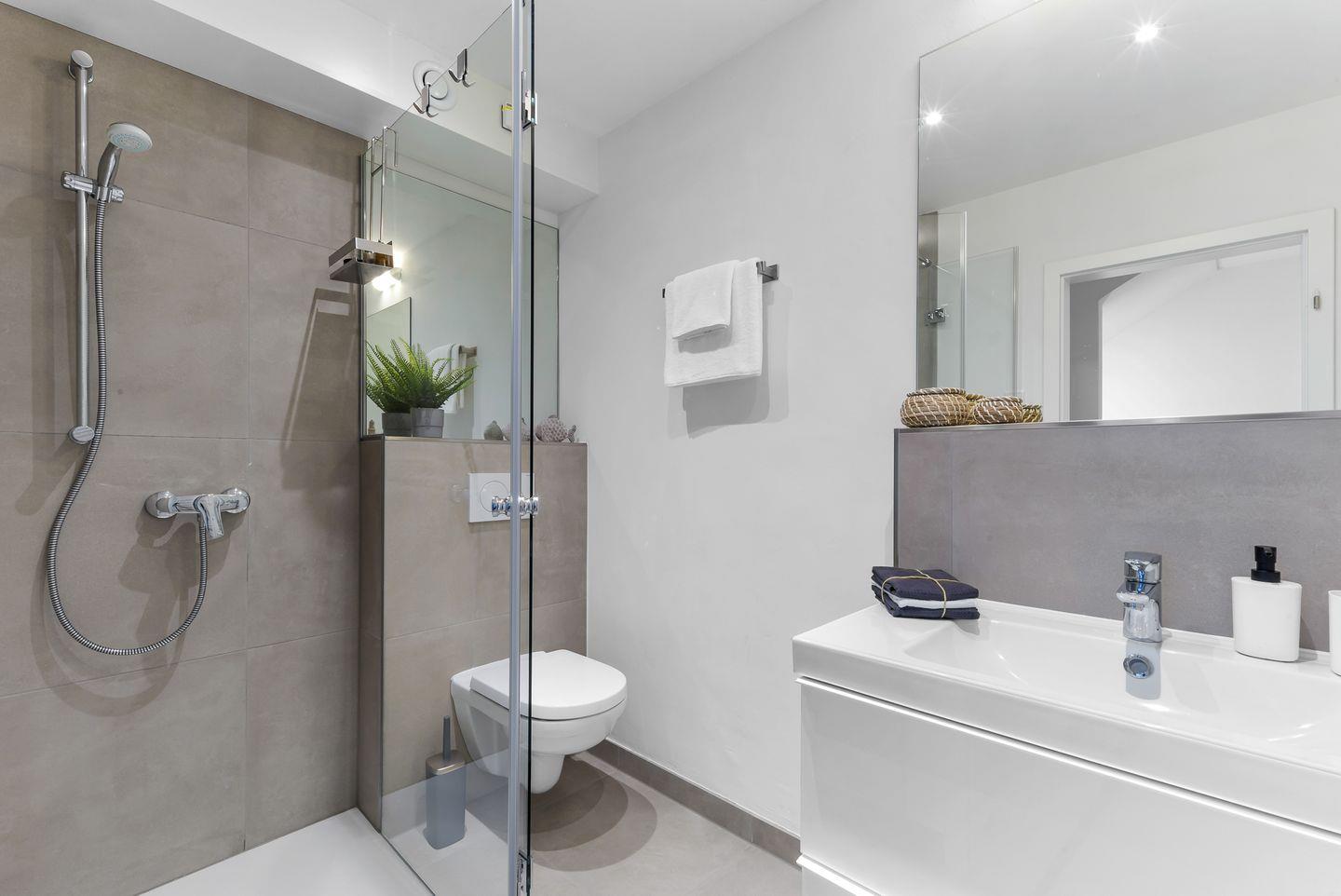 Ein Badezimmer mit modernem Duschbad befindet sich ebenfalls im Haus.