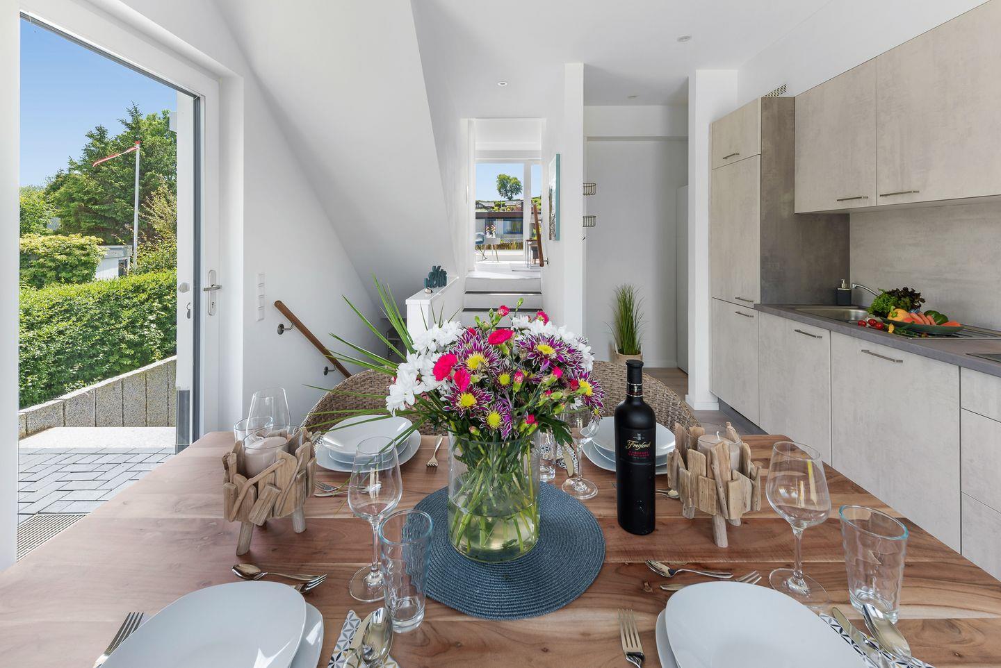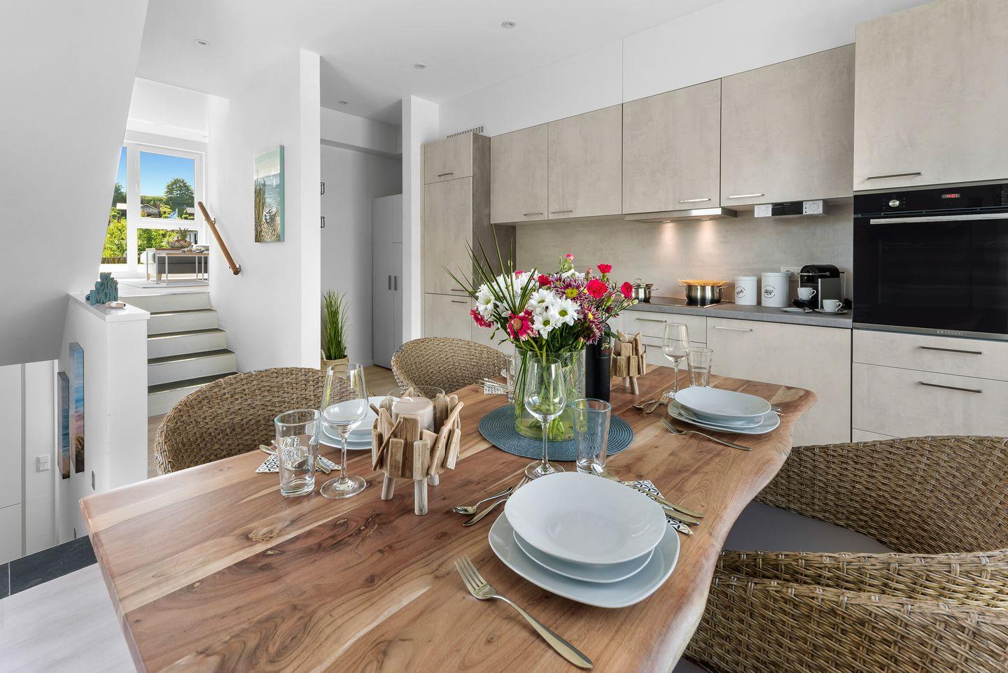 Das neugebaute und lichtdurchflutete „Strandhaus“ mit großzügiger Dachterrasse und Wasserblick liegt am Rand der Glücksburger Halbinsel Holnis.