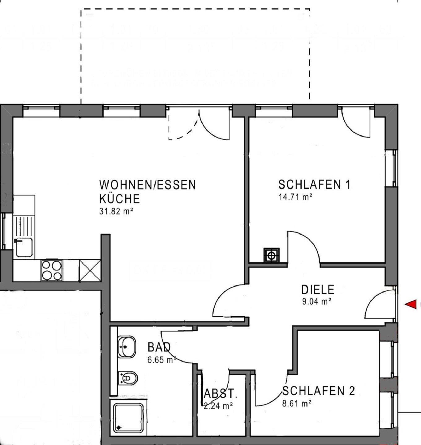 Sie verfügt unter anderem über eine Mikrowelle, einen Geschirrspüler, eine Kaffeemaschine, einen Toaster, einen Stabmixer und ein Handrührgerät sowie reichlich Geschirr und Kochutensilien.