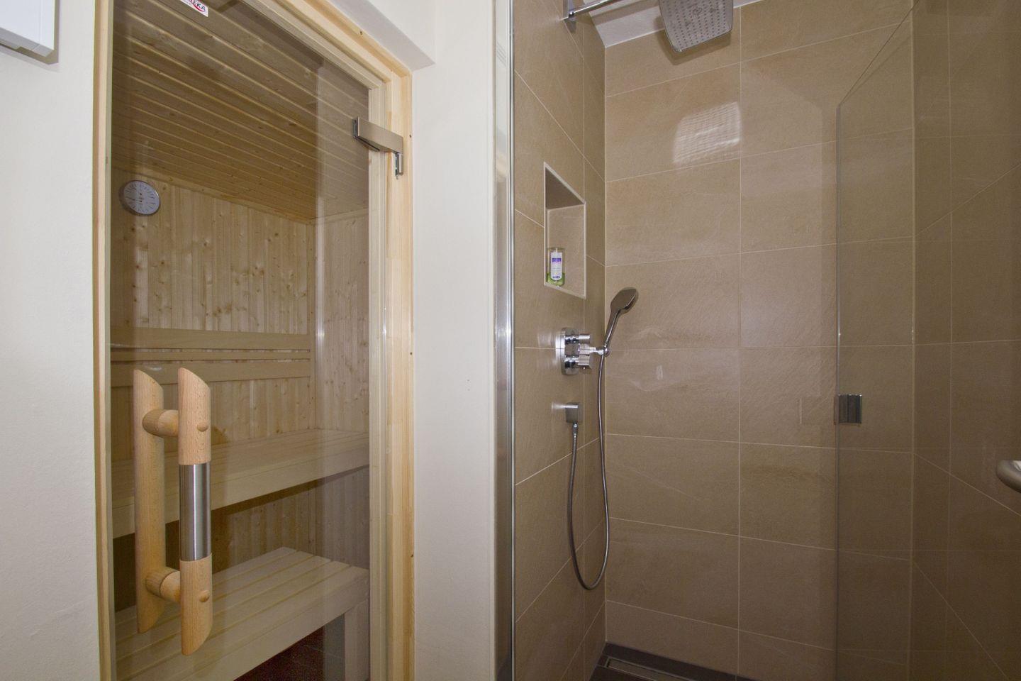 BAD // Tageslicht Bad im OG mit Badewanne, Dusche und WC, Gäste-WC im EG, separate Sauna mit Dusche im EG ++
