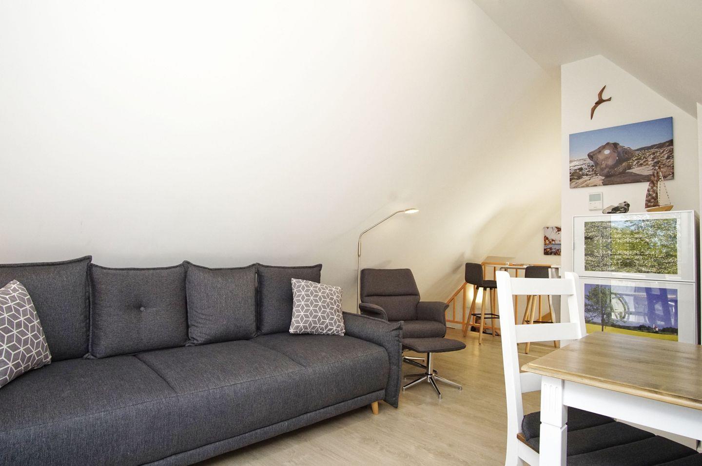 WOHNEN // Wohnraum mit Essbereich, Sitzgarnitur mit bequemer Couch, Flachbild-TV (Kabel) und Sky Komplettpaket, Radio ++