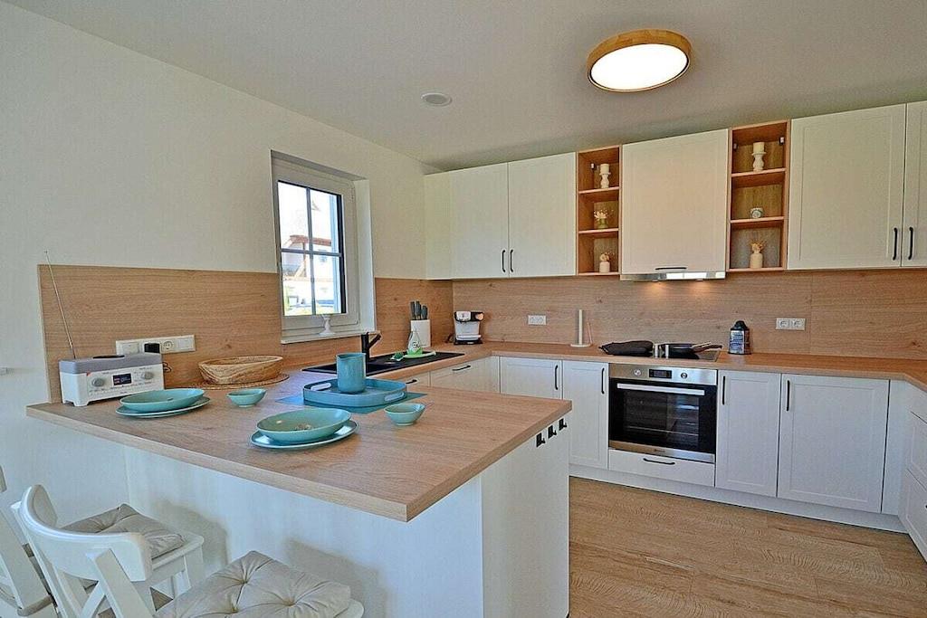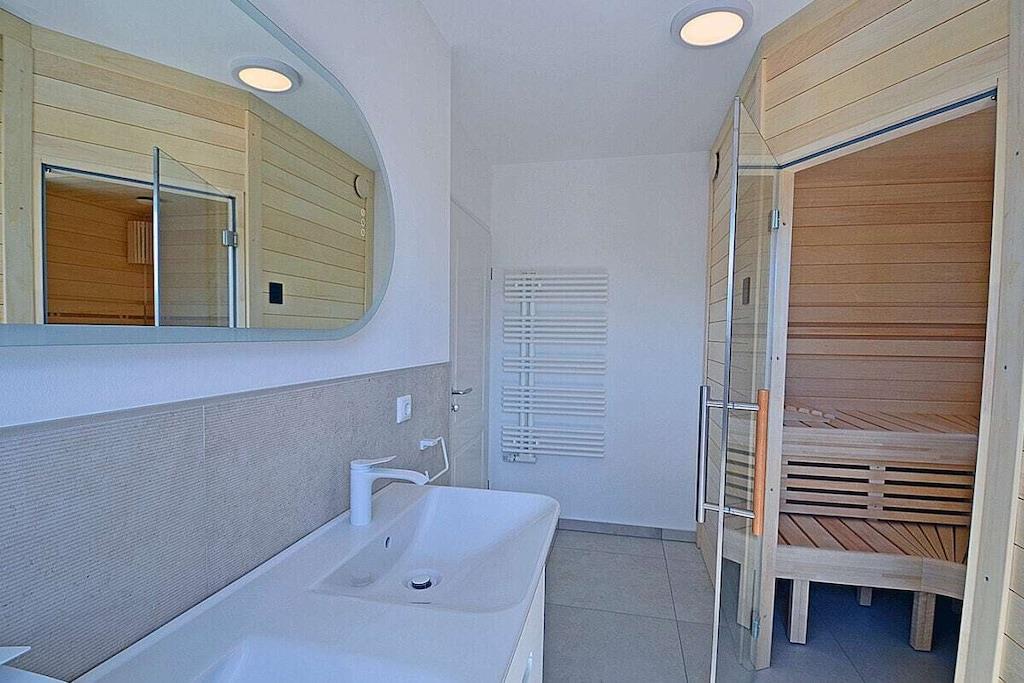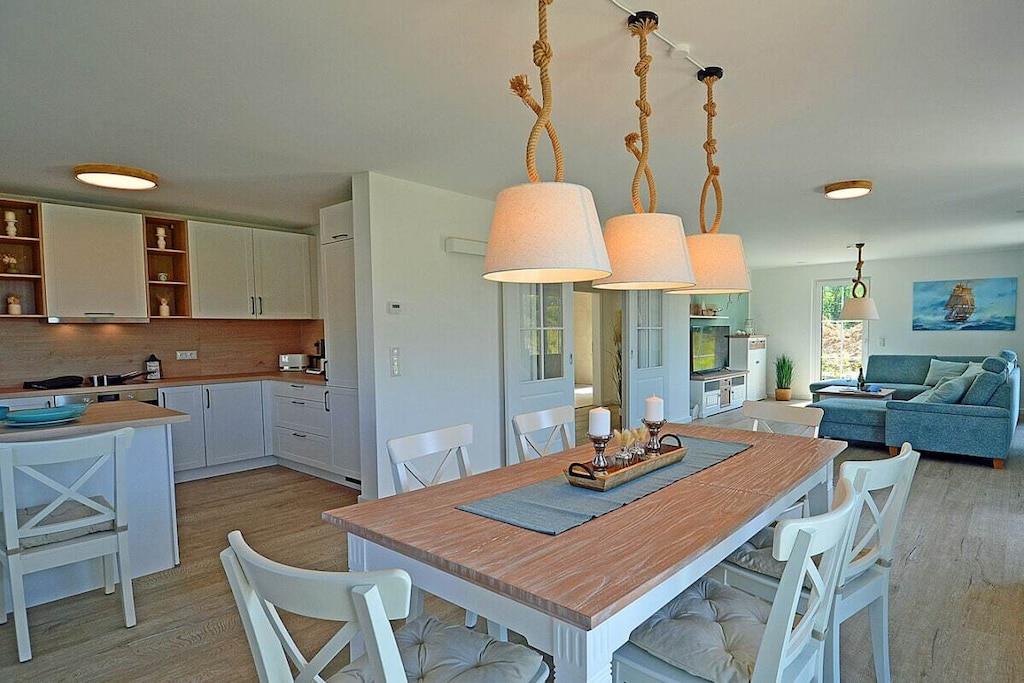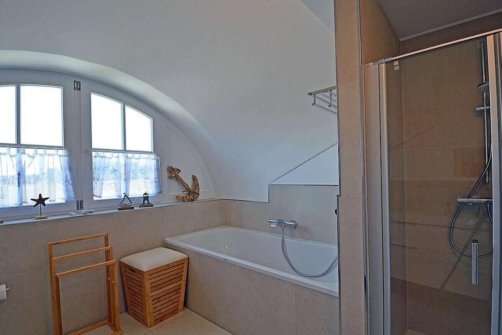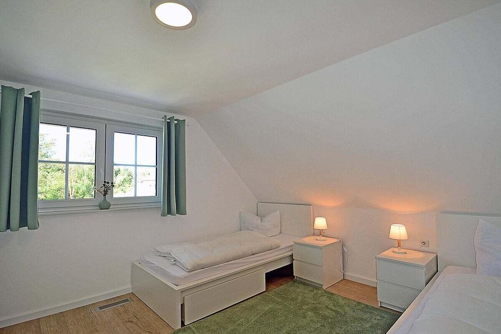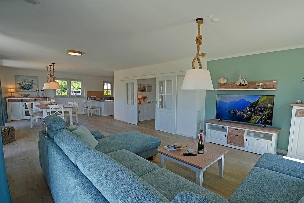 Erdgeschoss: großzügiger Wohn-, Essbereich mit Fußbodenheizung, elektrische Außenjalousien an allen Fenstern, gemütliche Couchlandschaft, Smart-TV (Home-Entertainment), Hifi-Anlage, Internet (WLAN), Gesellschaftsspiele und Bücher für gemütliche Abende, komplett ausgestattete hochwertige Einbauküche mit 4-Plattenherd (Ceran), Backofen, Kühlschrank mit großem Gefrierfach, Geschirrspüler und diversen Elektrogeräten 1. Badezimmer mit Dusche/WC, Sauna mit direktem Terrassenzugang, separates Gäste-WC Hauswirtschaftsraum mit Waschmaschine und Wäschetrockner, Wäscheständer, Bügelbrett, Bügeleisen, Staubsauger, für die Kleinen gibt es einen Kinderhochstuhl und Kinderbett mit Inlett Obergeschoss: 1. und 2. Schlafzimmer mit je einem Doppelbett (getrennte Matratzen jeweils 90 x 200 cm) Kleiderschrank und Sideboard, 3 und 4. Schlafzimmer mit je zwei Einzelbetten (90 x 200) Kleiderschrank und Sideboard, großes Badezimmer mit Badewanne, Dusche, großer Waschtisch und WC Dachgeschoss: Spaß für Groß und Klein bietet der Gaming Room mit TV, WC mit Waschbecken Außenbereich: großes umzäuntes Grundstück mit ca. 630 m², Terrasse mit gemütlichen Gartenmöbeln (6 Gartenstühle und 3 Liegestühle) und großem Sonnenschirm, Grillmöglichkeit besteht (Grill vorhanden), 3 PKW Stellplätze direkt am Objekt, überdachte verschließbare Fahrradabstellmöglichkeit (Gartenhaus) vorhanden