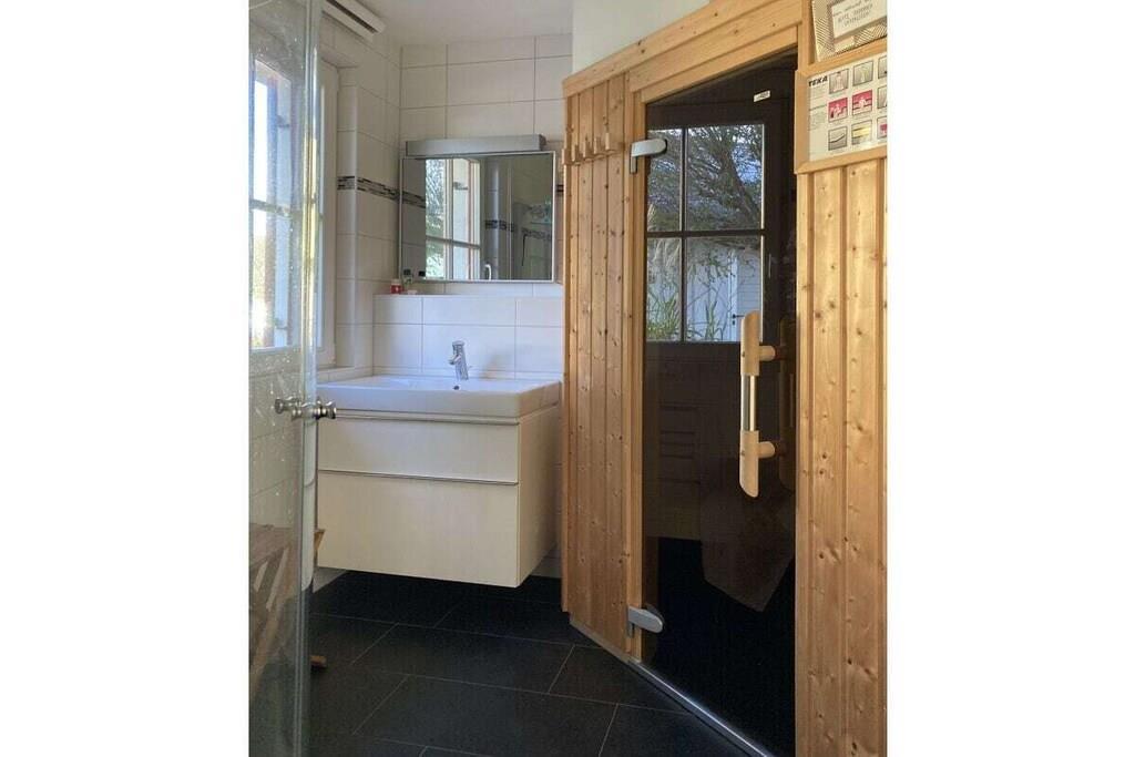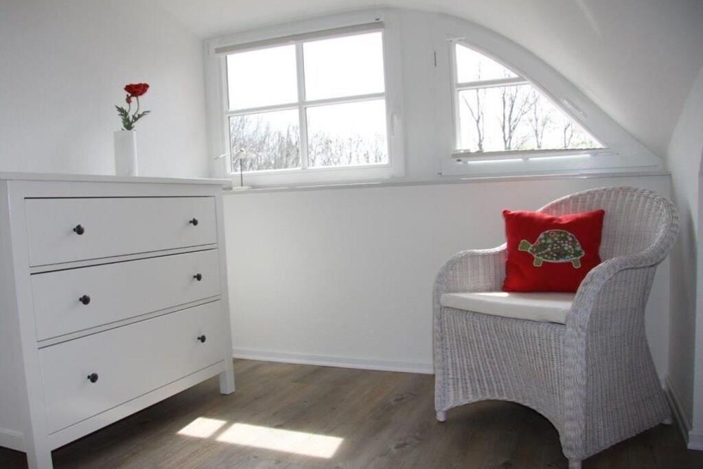 Das gemütliche Reetdachhaus 'Haus Klatschmohn' bietet alles, was das Herz begehrt. Es hat ca. 120 m² und bietet Platz für sechs Personen sowie ein Kleinkind. Der große Garten kann von der Straße nicht eingesehen und durch vier Türen betreten werden. Hier können Sie sich erholen, grillen und viele Sonnenstunden genießen. Das Ferienhaus hat eine Fußbodenheizung sowie einen offenen Kaminofen, den Sie im Wohnbereich finden. Die Sauna lädt zum Entspannen ein. Das Ferienhaus bietet zudem ein Wohn- und Essbereich mit Flachbildfernseher, DVD-Player, Radio/CD-Anlage, Internetanschluss (WLAN) sowie Büchern zum Schmökern und viele Spiele. Die Einbauküche hat ein Induktionskochfeld, eine Spülmaschine, einen Backofen sowie eine Mikrowelle. Im Haus finden Sie zwei Badezimmer, eines mit Dusche und Sauna im Erdgeschoss sowie das zweite mit Eckbadewanne und Dusche im Obergeschoss. Die drei Schlafzimmer haben jeweils ein Doppelbett (ein Schlafzimmer ist zusätzlich mit einem TV ausgestattet). Für die kleinen Gäste bieten wir einen Hochstuhl, ein Kinderreisebett und einen Bollerwagen sowie ein Treppenschutzgitter. Zur Ausstattung gehören ebenfalls ein Föhn, eine Waschmaschine, ein Trockner und ein Bügeleisen sowie Gartenmöbel, ein Strandkorb und ein Grill (der entsprechend der Windrichtung drehbar ist). Für Ihr Auto stehen zwei eigene PKW-Stellplätze zur Verfügung. Die Fahrräder können im Schuppen abgestellt werden. Das Ferienhaus ist ein Nichtraucherhaus und ist komfortabel und gemütlich eingerichtet.