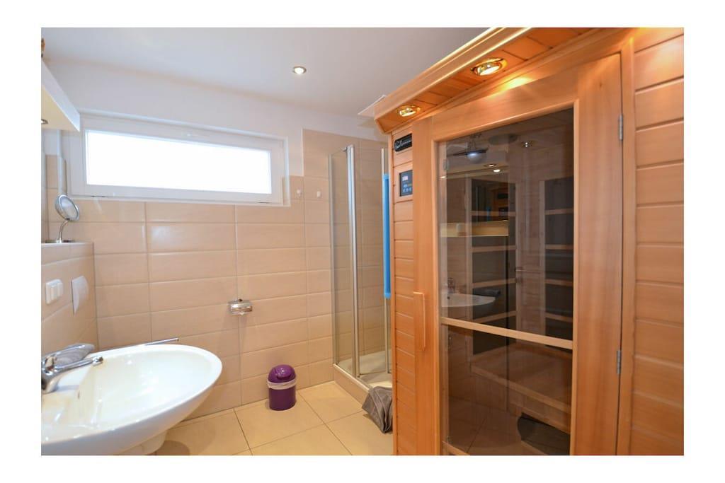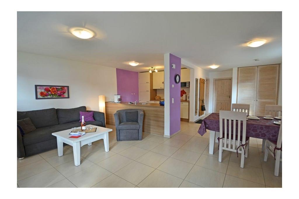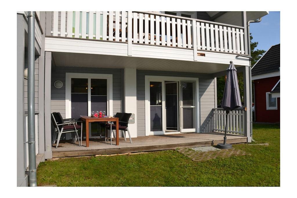 Wohn- Essbereich mit gemütlicher Ausziehschlafcouch die einen Schlafplatz für 2 Personen bietet, Esstisch, TV/ Sat (Flatscreen) mit DVD-Player, Bücher und Gesellschaftsspielte für gemütliche Abende stehen zur Verfügung, Radio/CD-Player, offene komplett ausgestattete Einbauküche mit 4- Plattenherd, Backofen, Kühlschrank mit großem Gefrierfach, Mikrowelle, Geschirrspüler und diversen Elektrogeräten, Bad mit Waschmaschine, Dusche/ WC und Infrarot-Sauna (bis 60 °C), Föhn und Kosmetikspiegel vorhanden, Schlafzimmer mit Doppelbett (180×200), Kleiderschrank und TV/Sat (Flatscreen), Terrasse mit Terrassenmöbel für 6 Personen und Sonnenschirm, Haustiere nach Absprache (maximal 1 Hund, Gebühr Euro 5,- pro Nacht) Ferienwohnung „Pia“ in skandinavischer Architektur Zum feinsandigen Ostseesandstrand sind es nur 500 Meter. Eine Waschmaschine, sowie Internet/ WLAN stehen zur Verfügung und sind kostenfrei nutzbar. Für Ihre Kleinen befindet sich ein Kinderreisebett und ein Kinderhochstuhl in der Ferienwohnung. Die wohnungseigene Sauna bietet optimale Erholung und Entspannung während des Aufenthalts. Fußbodenheizung gibt es in jedem Raum. Für Ihre mitgebrachten Fahrräder befindet sich am Objekt auch eine Fahrradabstellmöglichkeit. Die Ferienwohnung ist ein Nichtraucherquartier. Für die Anreise mit Ihrem Auto steht Ihnen ein eigener PKW-Stellplatz direkt vor der Ferienwohnung kostenfrei zur Verfügung. Restaurants, Einkaufsmöglichkeiten, Bäcker und optimale Rad- und Wandermöglichkeiten liegen in unmittelbarer Nähe. Vom Strand aus geniest man einen traumhaften Blick auf den Leuchtturm von Kap Arkona oder erlebt bei Spaziergängen die Sonnenuntergänge entlang der Strandpromenade.