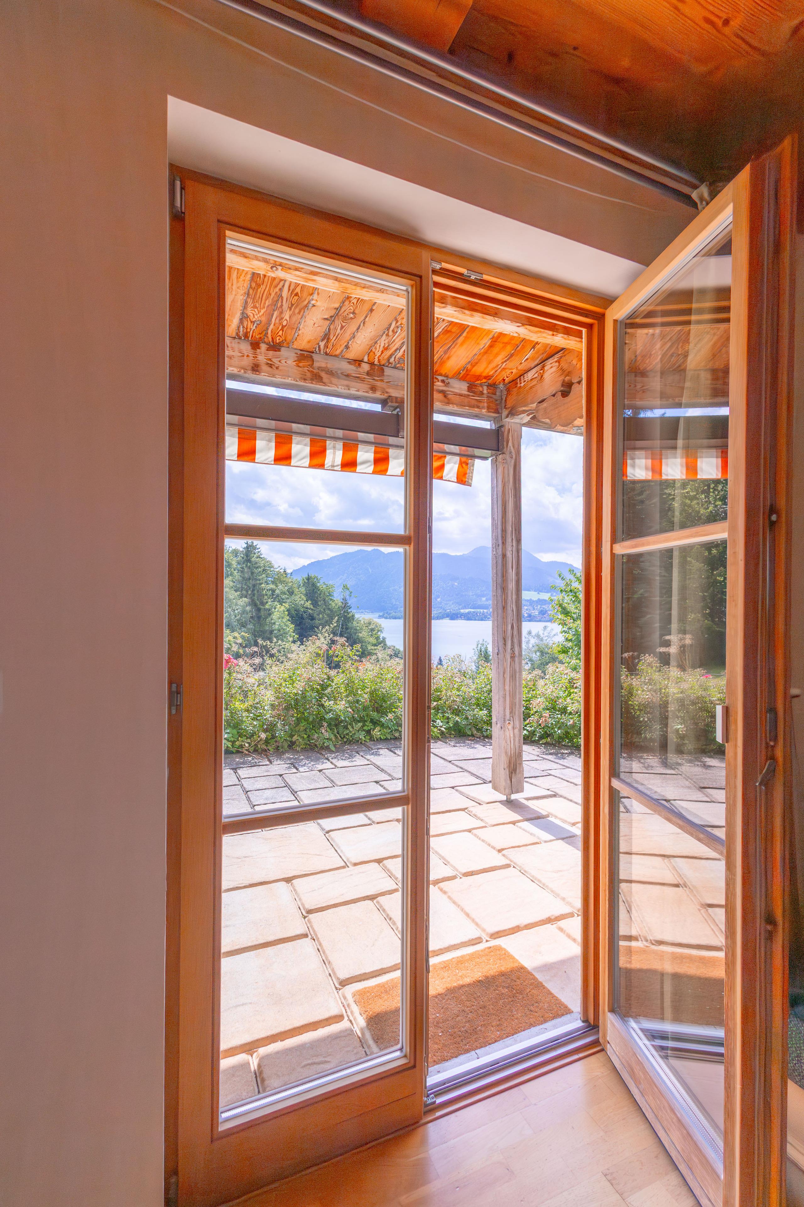 Von der Terrasse aus genießen Sie einen herrlichen Blick auf den Tegernsee und die umliegende Natur. Die Einrichtung mit hochwertigen Holzmöbeln verleiht der Wohnung eine warme Atmosphäre und lädt zum Entspannen ein. Die barrierefreie Ausstattung ermöglicht auch Gästen mit eingeschränkter Mobilität einen angenehmen Aufenthalt.