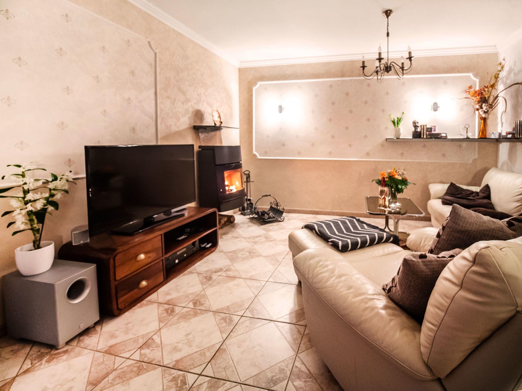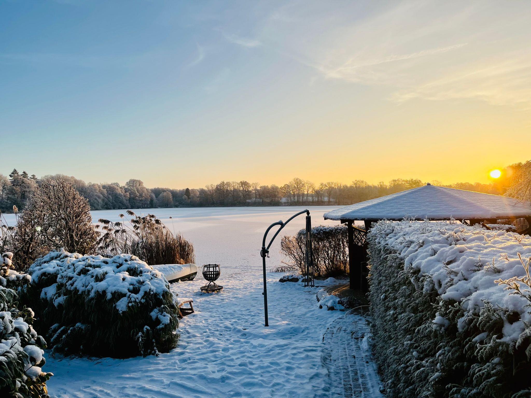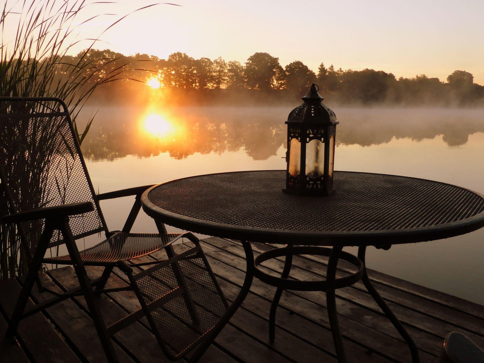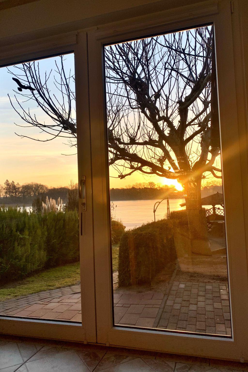 The holiday home has 55 m² of living space and can accommodate four people. The cosy living and dining room with lake view offers comfortable seating for four people and is a wonderful place for breakfast in the sunrise. On chilly days, the fireplace invites you to spend an evening at home. The required firewood is included and can be replenished at any time. The pull-out sofa bed can be used as a bed for children or spontaneous visitors. The living area is equipped with satellite TV, 5.1 hi-fi system, DVD player, media player (large & current selection of cinema films) and a free WiFi hotspot. The fully equipped kitchen with ceramic hob, oven, coffee machine, fridge, freezer and extensive cooking utensils is ideal for self-catering. You will find everything the ambitious chef could wish for. For those who prefer to cook, there are various restaurants in the neighbourhood and one or two delivery services. In the bedroom you will find a double bed with two bedside cabinets and a clock radio. A cot can be added free of charge. Extensive baby and toddler accessories can also be provided free of charge on request. The lovingly designed and newly renovated bathroom with underfloor heating and bathtub invites you to relax.