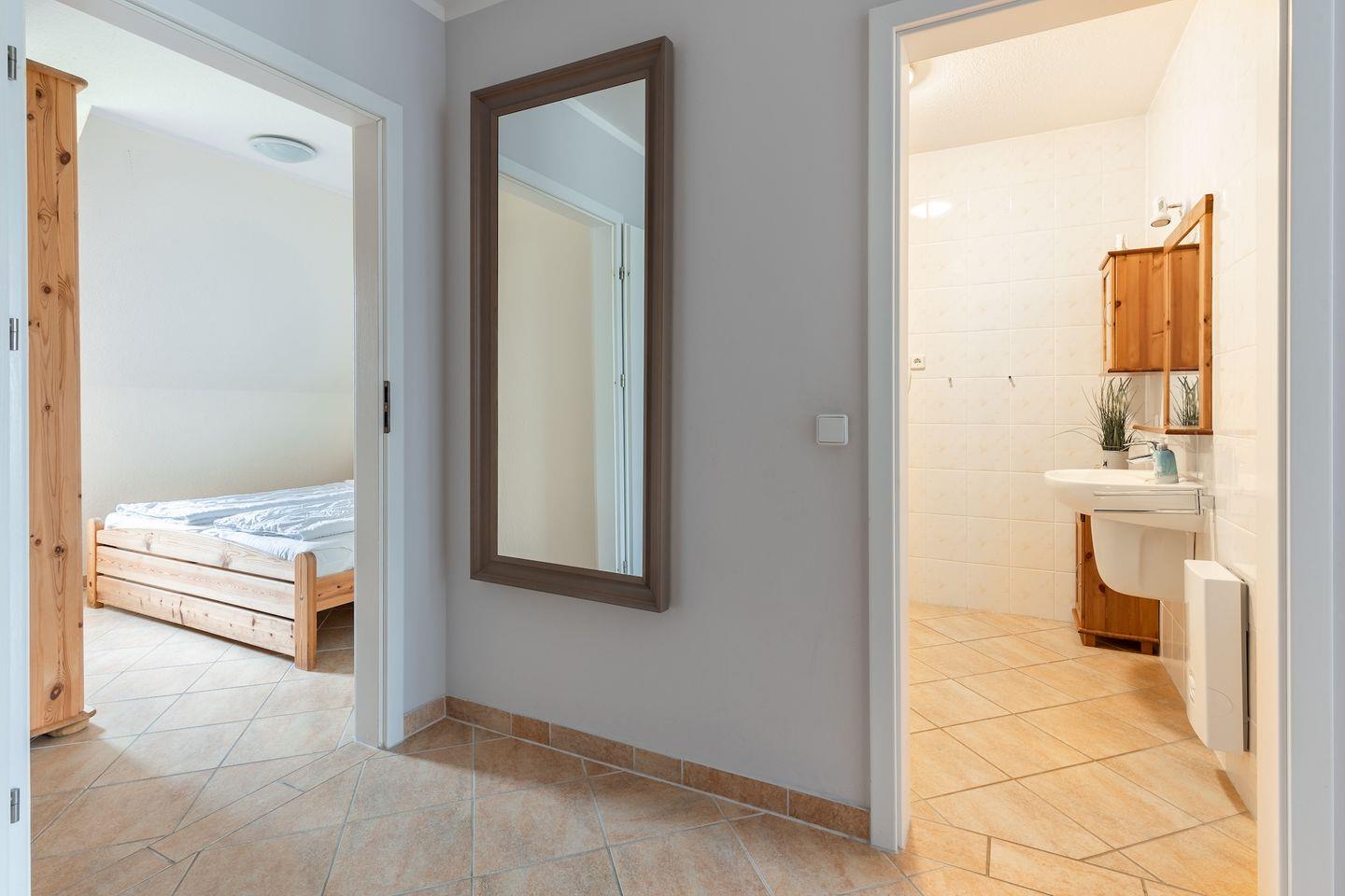 Die gemütlichen Schlafzimmer sind mit jeweils einem Doppelbett möbliert und ermöglichen guten Schlafkomfort. Im Badezimmer verfügen Sie über eine Dusche, einen Waschtisch, ein WC und einen Föhn.