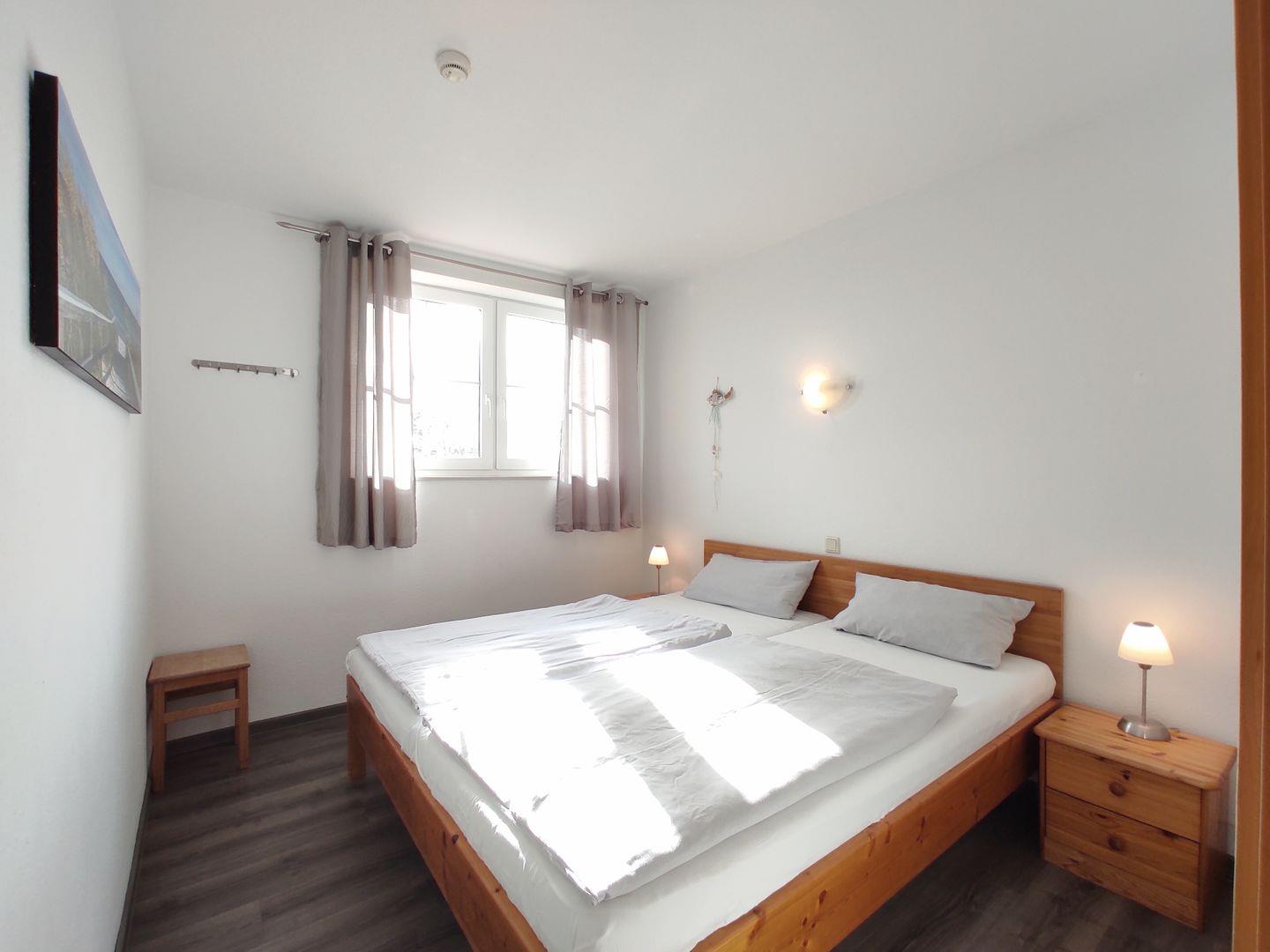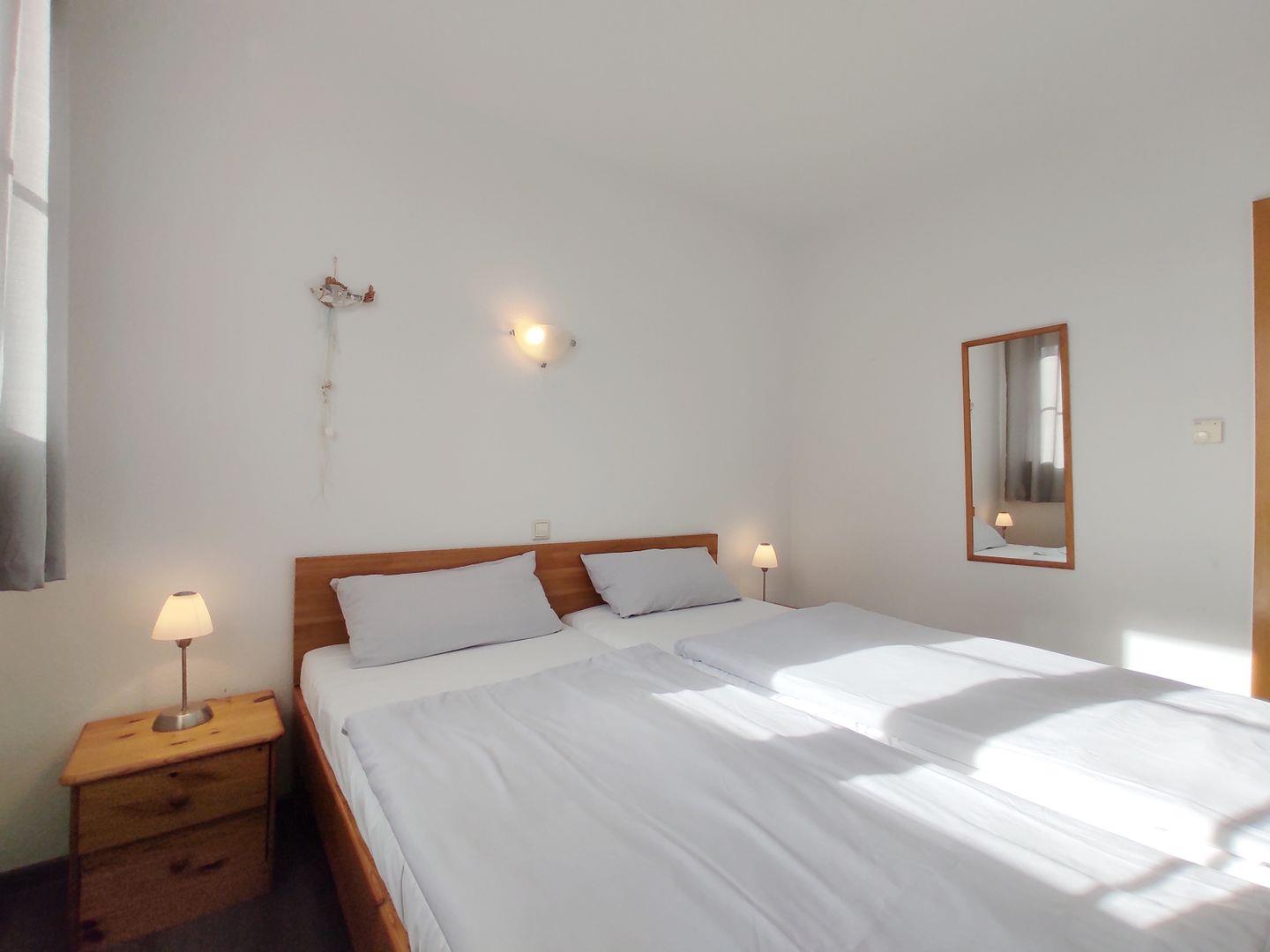 Die Wohnung besteht aus zwei Zimmern. Das erste ist ein geräumiges Schlafzimmer mit einem komfortablen Doppelbett, in dem Sie sich nach einem erlebnisreichen Tag am Strand entspannen können. Die frische Meeresluft wird Ihnen sicherlich einen erholsamen Schlaf bescheren.