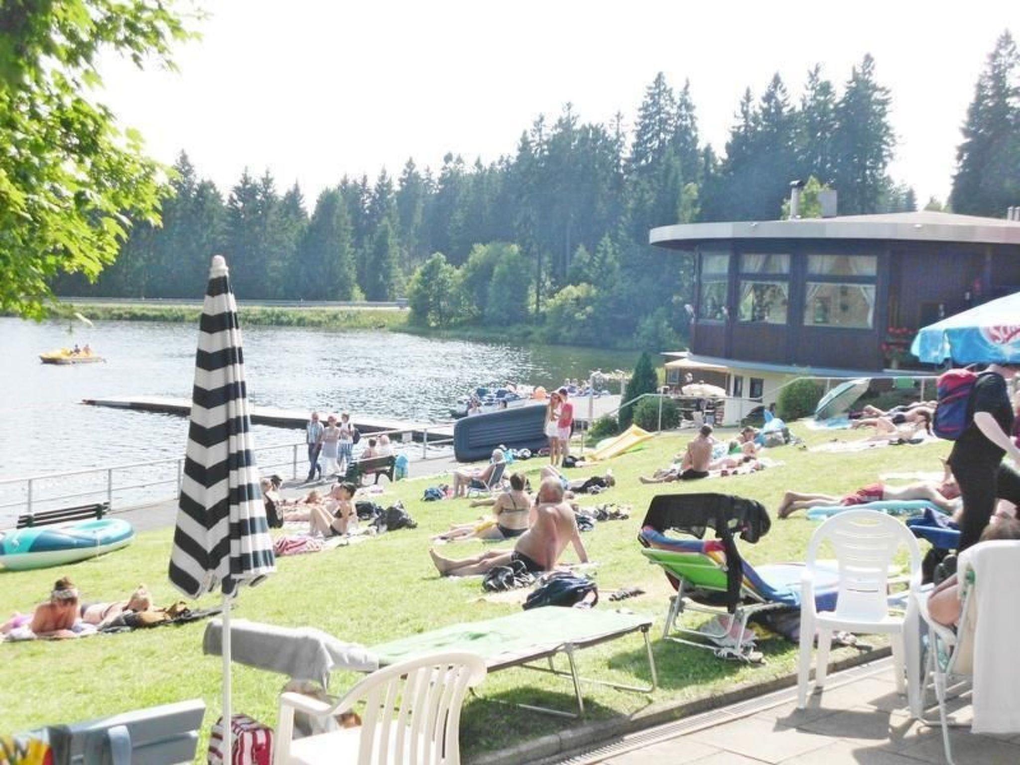 Not far from the centre of the village, the spa gardens, indoor swimming pool and various restaurants (all approx. 300-400 metres) is Haus Hopfe with its PREMIUM holiday flats "BERGBLICK", which have been popular with regular guests for many years, with a magnificent view of the Bocksberg from all flats. Hiking trails start right outside the front door at the edge of the forest! And the idyllic Waldseebad or the multi-award-winning Liebesbankweg are only a few minutes' walk away.
