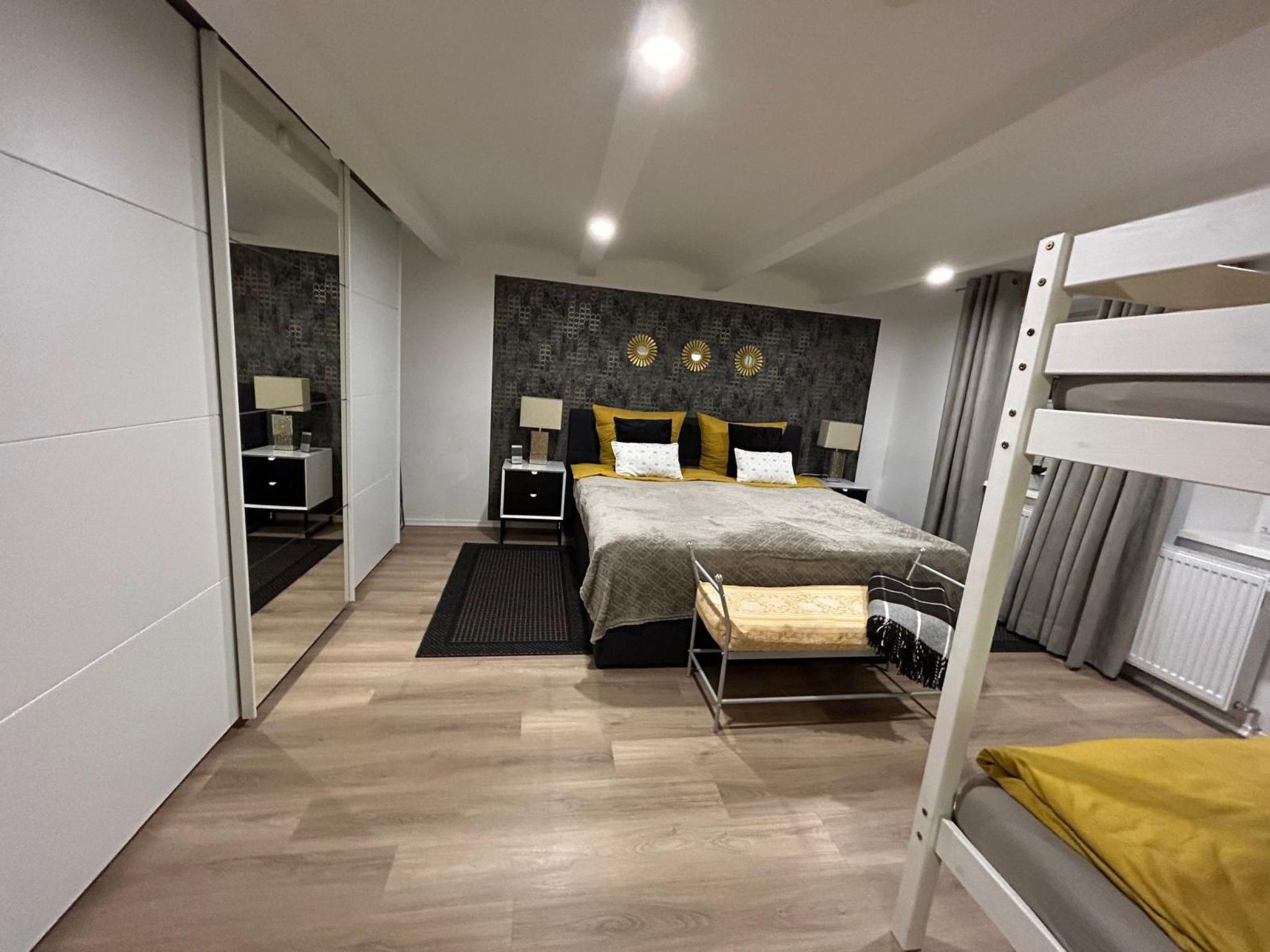 A wide range of amenities await you in the outdoor area. The separate entrance ensures privacy, while barbecue facilities and a seating area in front of the door invite you to linger outside. Behind the house there is a large garden with a swing, which is particularly popular with children. Free parking directly on the street offers additional convenience.