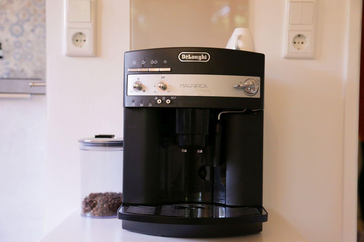 Es gibt eine neue, voll ausgestattete Einbauküche mit Cerankochfeld, Geschirrspüler sowie einen Kaffeevollautomaten der Firma de Longhi.