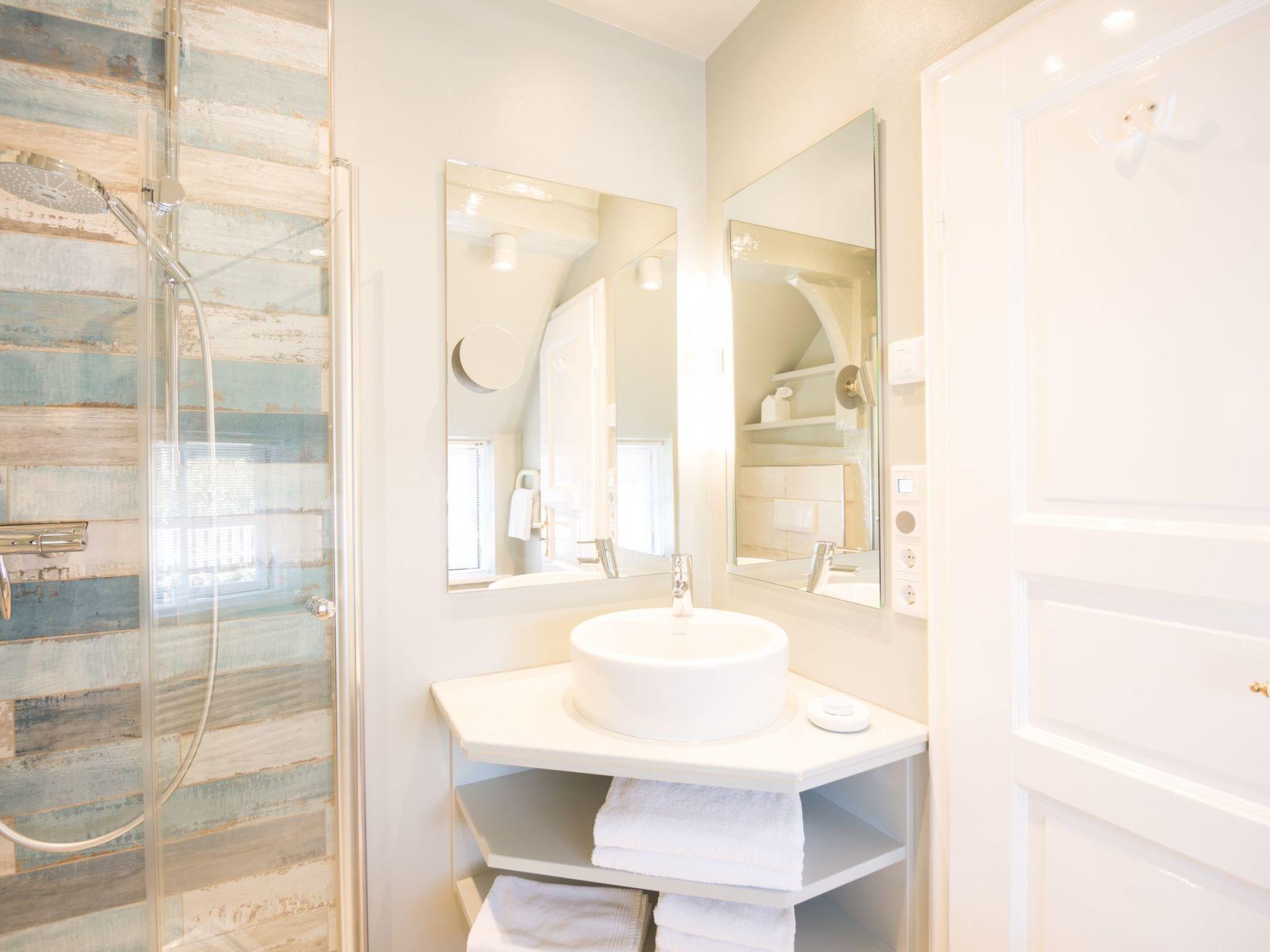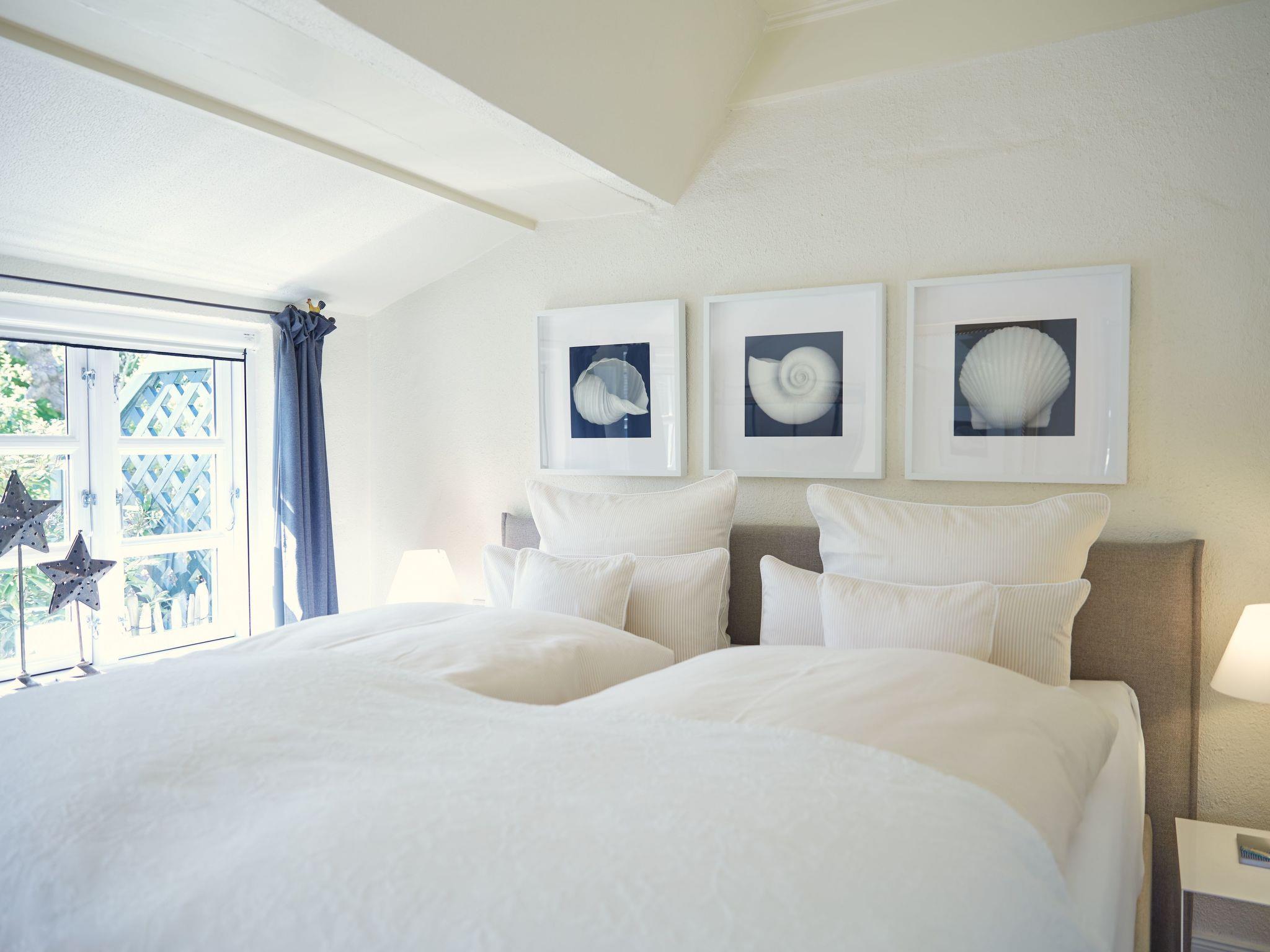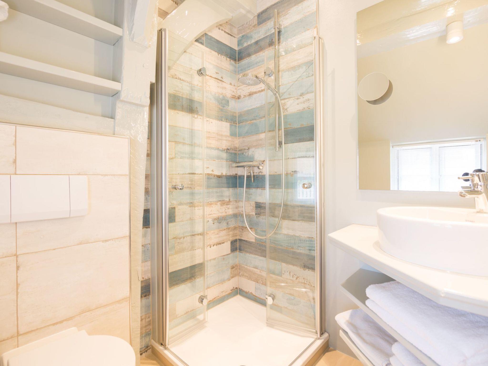 On the ground floor you will find the cosy living room with fireplace and access to your own garden, the master bedroom with a 1.80m box-spring bed, the fully equipped, integrated kitchen with dining area and a daylight bathroom with shower. The bedroom on the upper floor has two box-spring beds, each 1.20 metres wide, and a further daylight bathroom with shower.