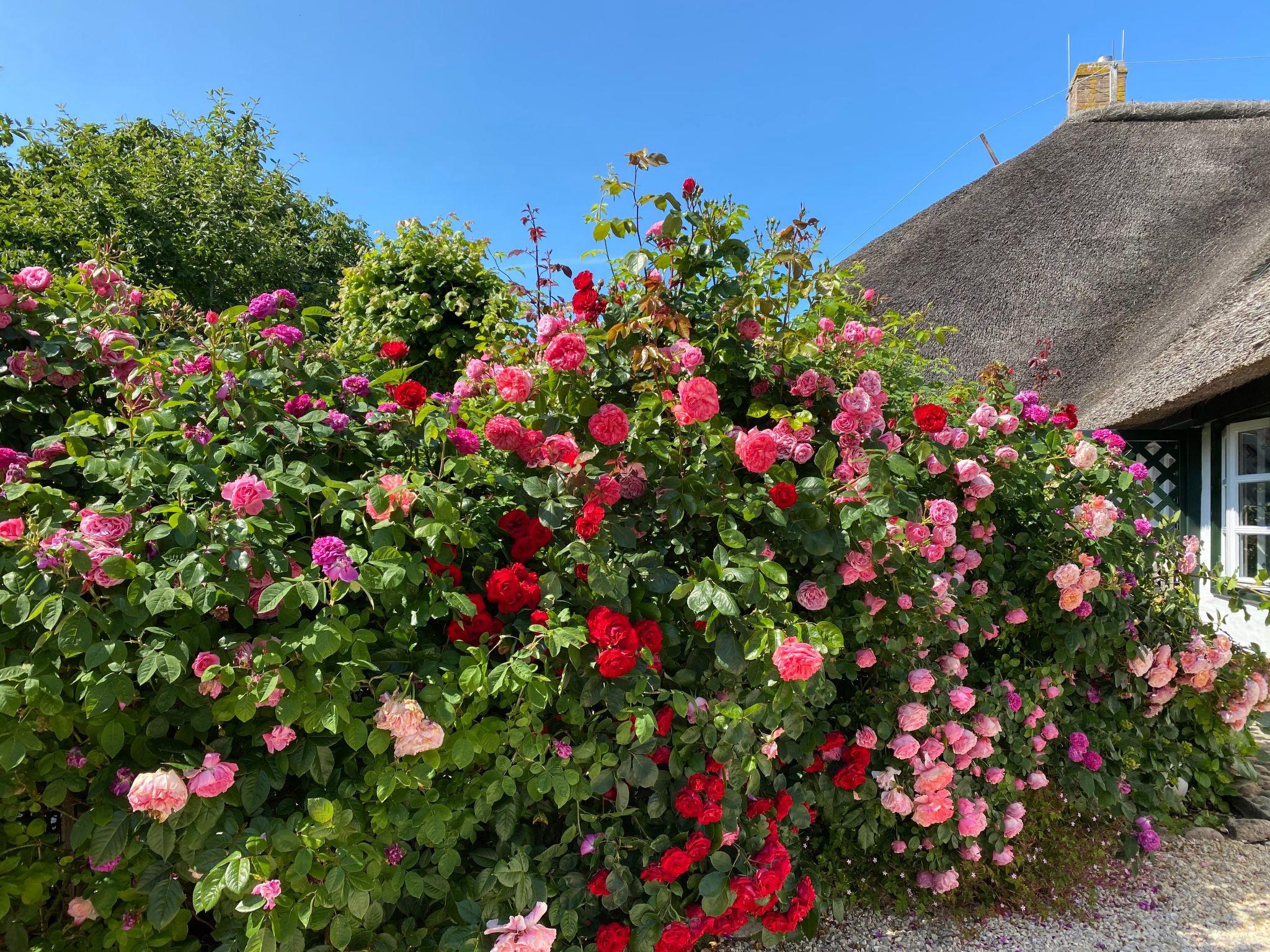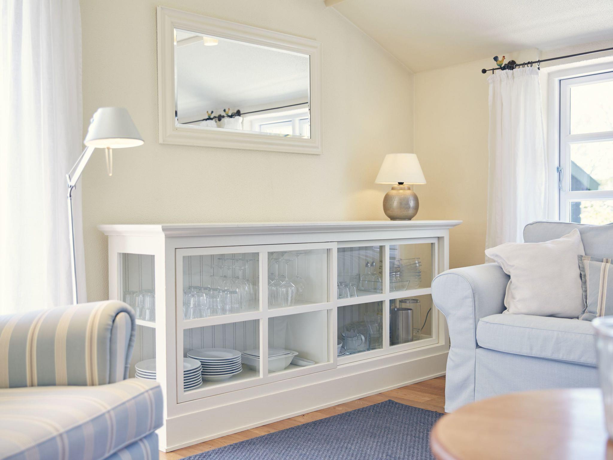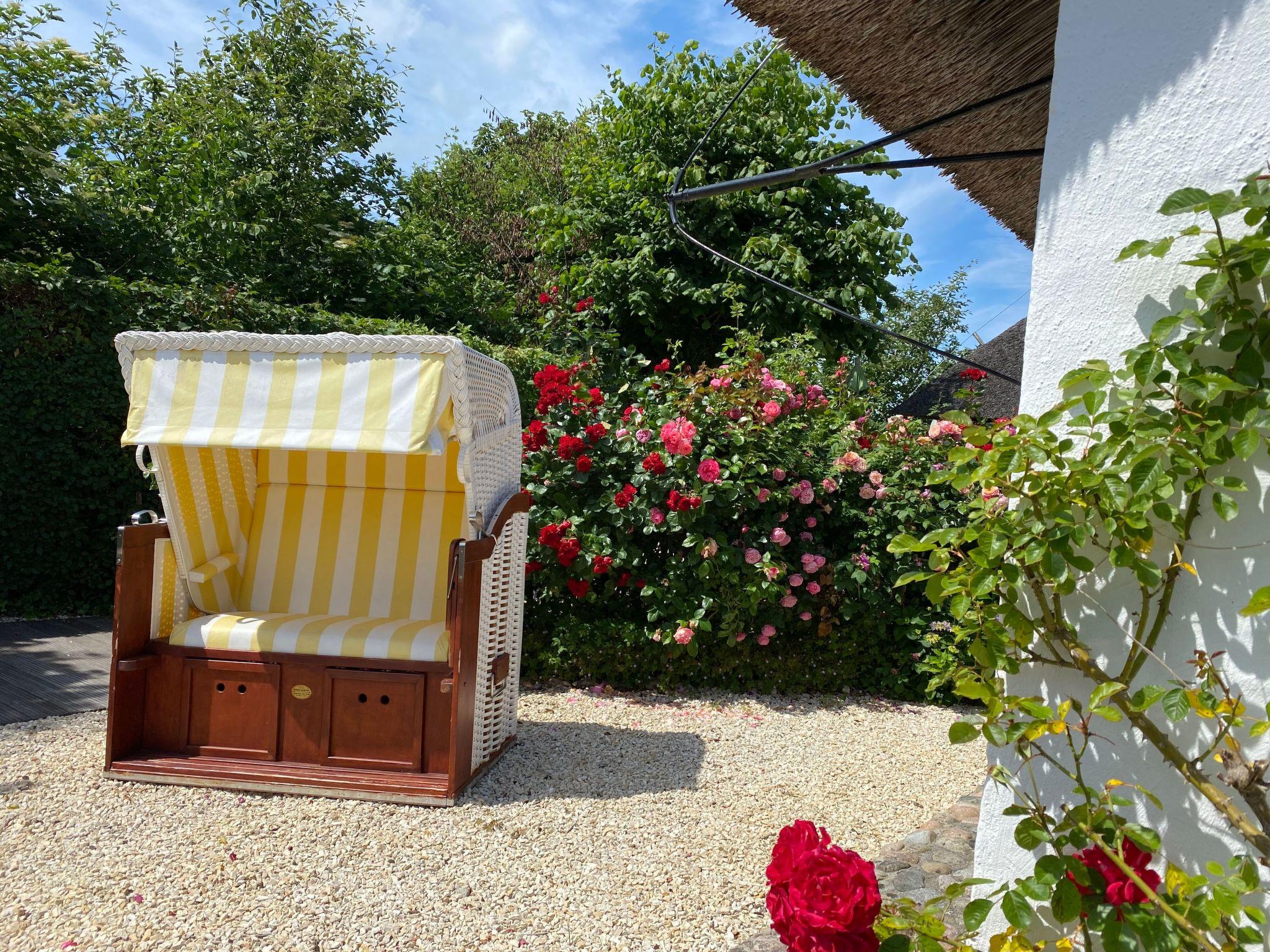 Your garden area is fenced in and additionally protected from prying eyes with rose bushes and hedges. On the terrace you have a dining area with teak table and wicker chairs, deckchairs for sunbathing and a beach chair for the cooler days or your own infrared sauna in autumn/winter.