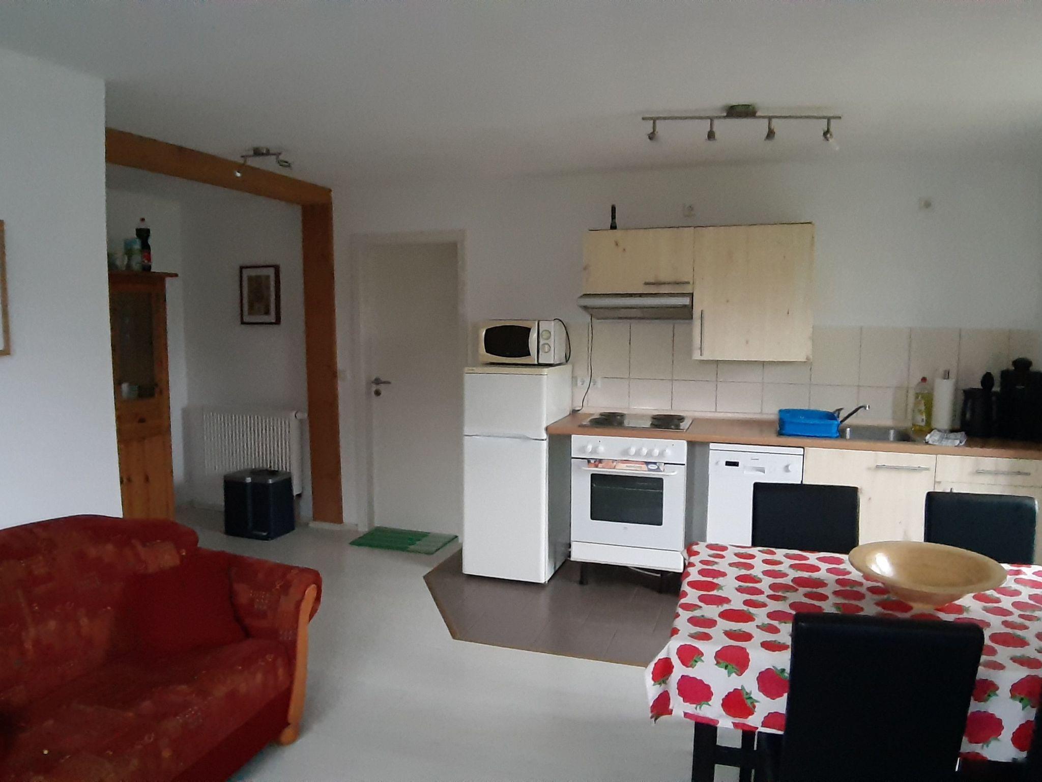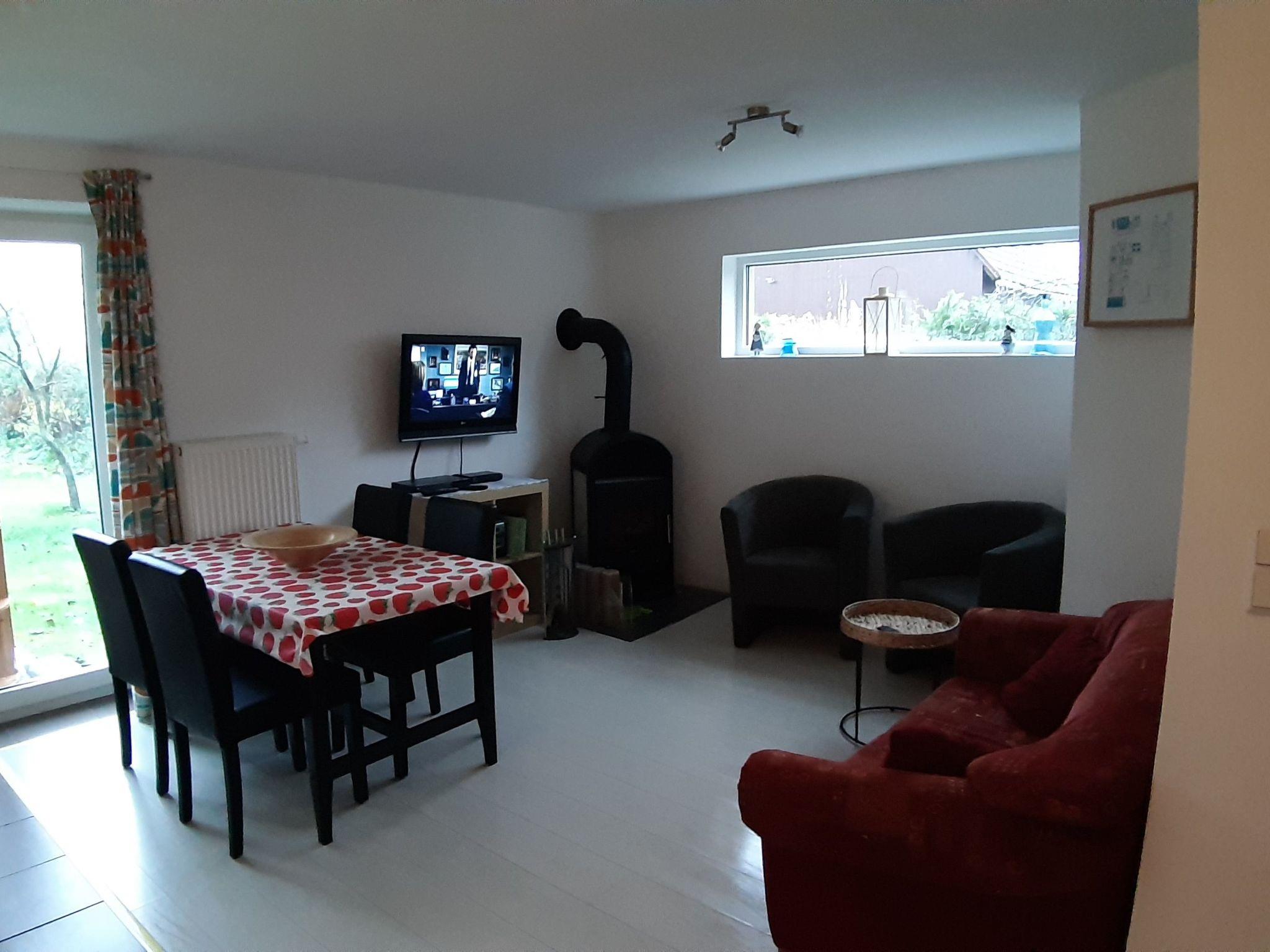 Ferienhaus Michel in the district of Vorpommern-Rügen in the tranquil village of Vorland, offers its guests a 65 square metre flat on the ground floor with three rooms for two adults and two children (up to 14 years). The flat has two bedrooms, one with a double bed (1.60 x 2.00 metres) and one with two single beds (0.90 x 2.00 metres). The eat-in kitchen with a view of the orchard is fully equipped. There is a cooker/oven with extractor bonnet, a dishwasher, microwave, a large fridge, as well as plenty of crockery and pots, toaster, kettle, coffee machine, blender. In the living area there is a 32" LCD TV, DVD player and a stereo system as well as a wood-burning stove, which provides cosiness and pleasant warmth on cold days. There is also a washing machine in the shower room with washbasin and a 1.20 x 0.80 metre shower tray and toilet. Garden furniture and a large trampoline await you in the large orchard.
