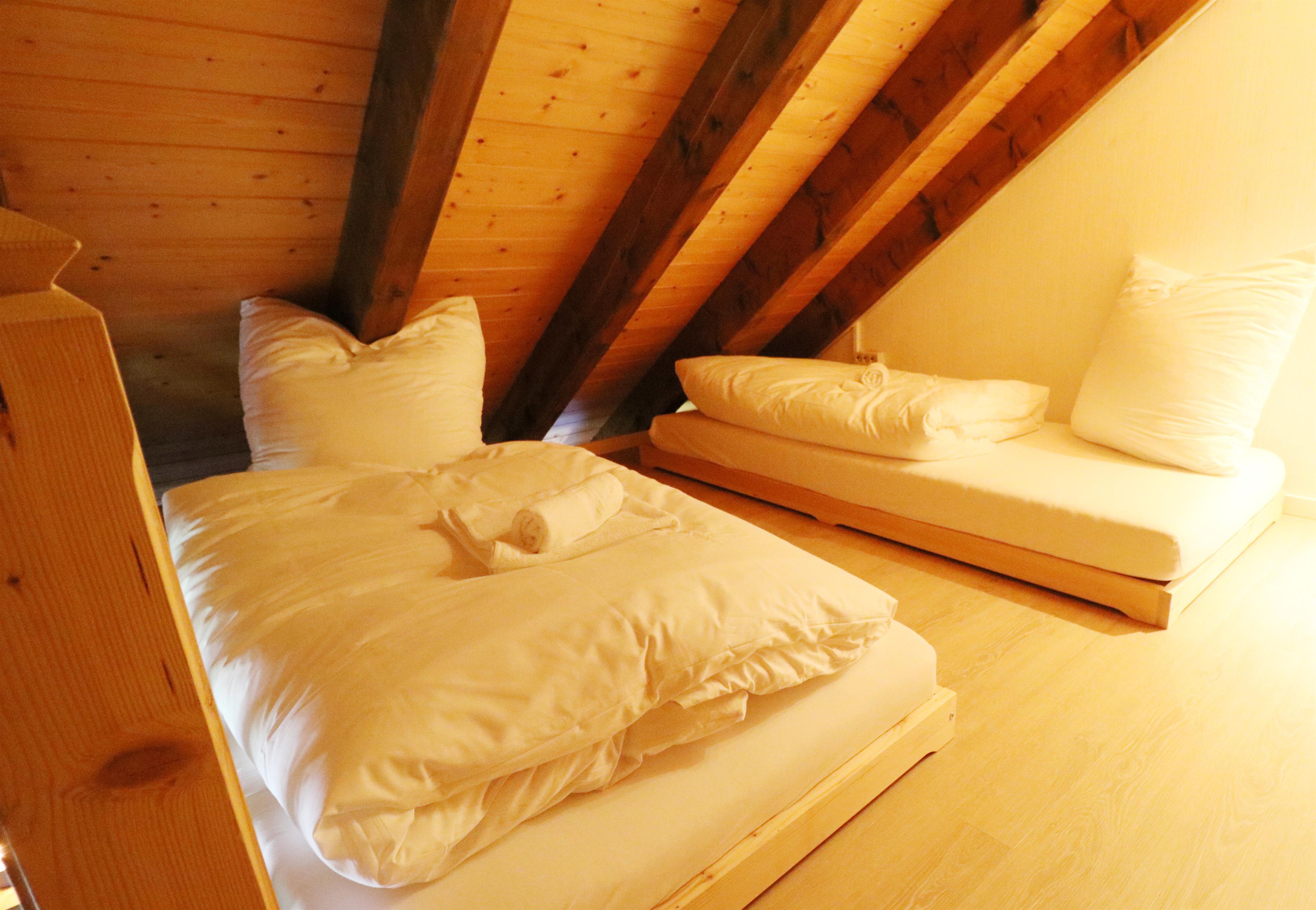 - Matratzenlager im Dachspitz mit 2 Einzelbetten