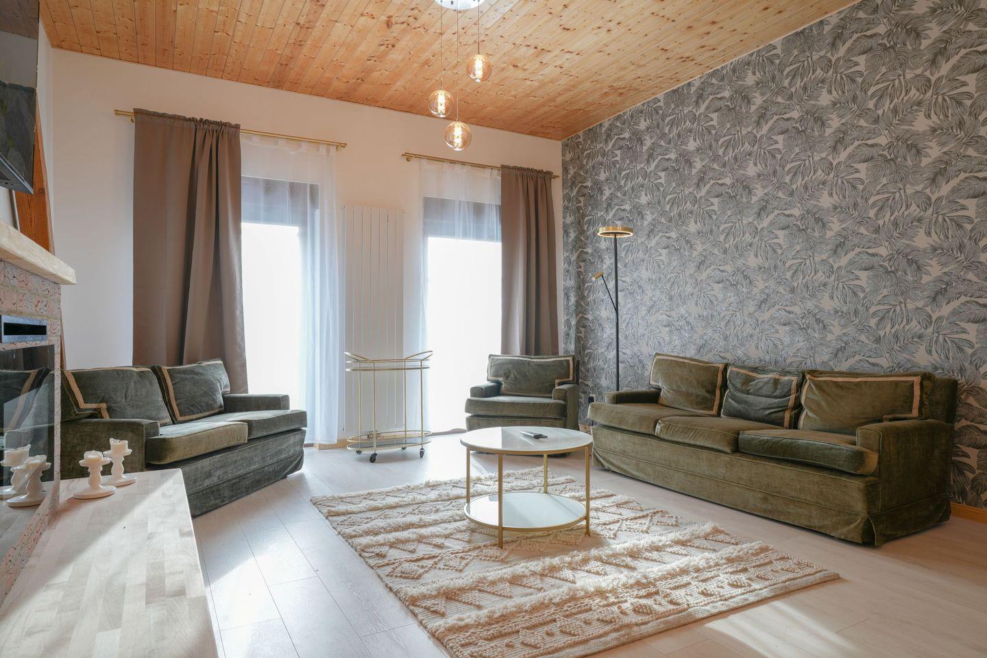 Die geschlossene Küche verfügt über einen Esstisch und ist mit Induktionsherd, Backofen, Spülmaschine sowie allen wichtigen Küchenutensilien ausgestattet. Hier können Sie bequem gemeinsam kochen und essen. Der Wohnbereich bietet eine angenehme Atmosphäre zum Entspannen. WLAN und ein TV stehen für ruhige Abende zur Verfügung.