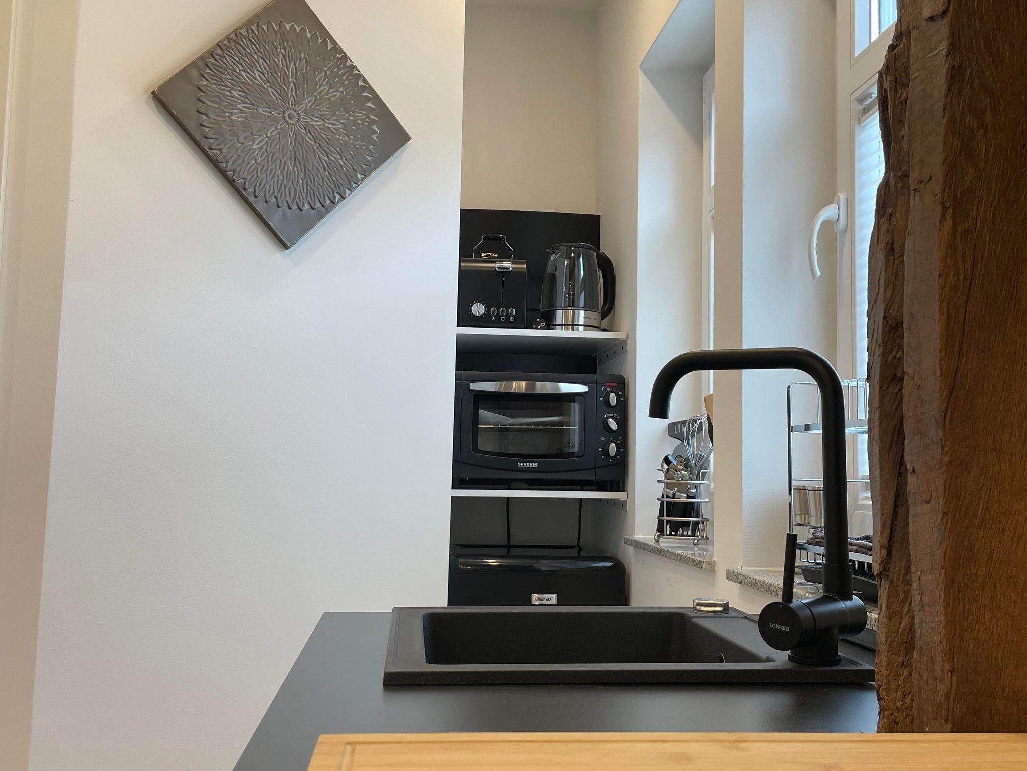 Minibackofen, diverse Koch- und Haushaltsutensilien, Toaster, Wasserkocher