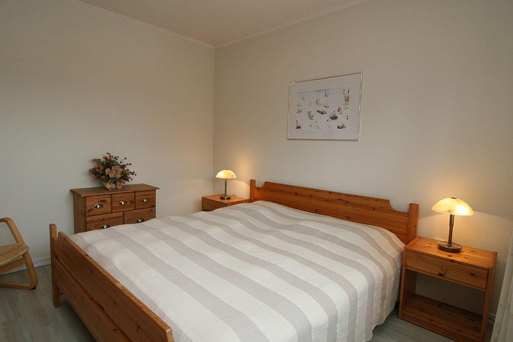 Die Wohnung verfügt über zwei Schlafzimmer, davon ein Schlafzimmer mit Doppelbett und ein Schlafzimmer mit 2 Einzelbetten. Von diesem zweiten Schlafzimmer gibt es einen Zugang zum Balkon Richtung Westen, der mit Balkonmöbeln ausgestattet ist. Das großzügige Wohnzimmer bietet eine gemütliche Sitzecke mit Blick auf dem Flatscreen-Fernseher sowie als zusätzliche Ausstattung einen DVD-Player. Die Küche ist mit einem Essplatz für 4 Personen ausgestattet und verfügt über Mikrowelle, Toaster, Kaffeemaschine, Waschmaschine, Geschirrspüler, 3-Sterne-Gefrierfach im Kühlschrank. Das neu renovierte Bad ist seniorengerecht und verfügt über einen Fön.