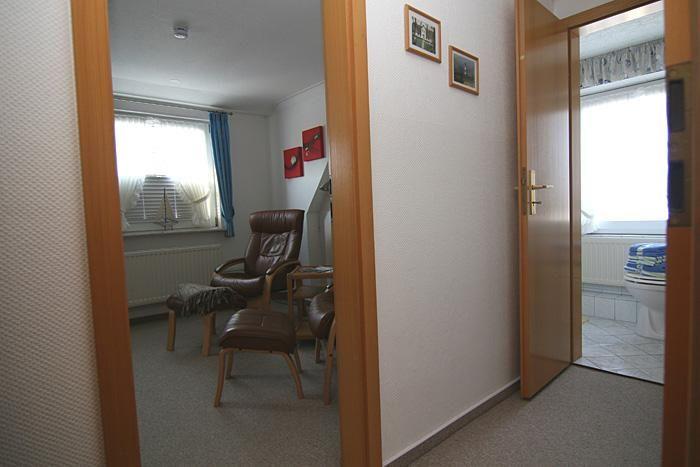 Die 2 Raumwohnung ist ca. 25 qm gross und für maximal 2 Personen. Im Garten befinden sich der Parkplatz und eine Sitzecke mit Strandkorb.