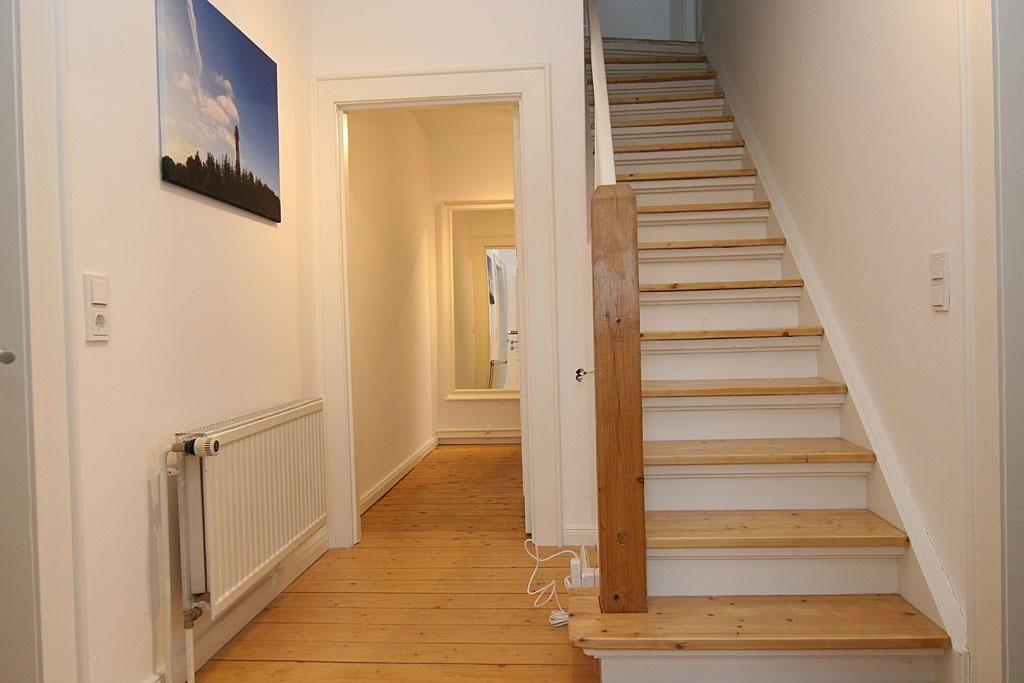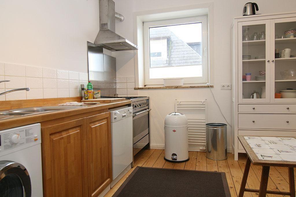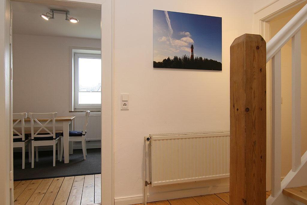Im Erdgeschoss liegt das Wohnzimmer mit Essecke und gemütlicher Sofaecke. Über den Flatscreen-TV erhalten Sie Ihr Programme mit T-Home. Hier befindet sich auf eines der Schlafzimmer mit Doppelbett und die komplett ausgestettete Küche, die über einen Gasherd verfügt. Hier im Erdgeschoss finden Sie auch ein Gäste-WC.