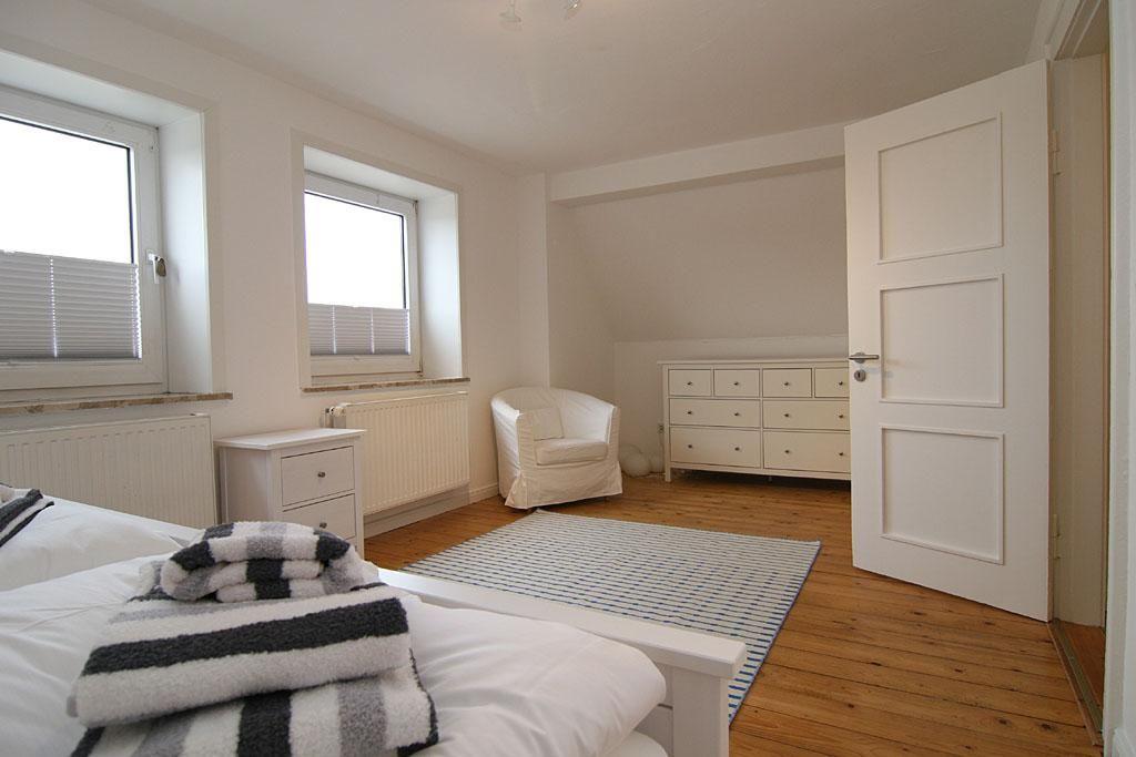 Das Haus verfügt über insgesamt drei Schlafzimmer. Davon sind zwei Schlafzimmer mit Doppelbett (1,80m x 2,00m) ausgestattet und eines mit einem Bett 1,40m x 2,00m für eine einzelne Person. Im Obergeschoss befindet sich auch das Duschbad.