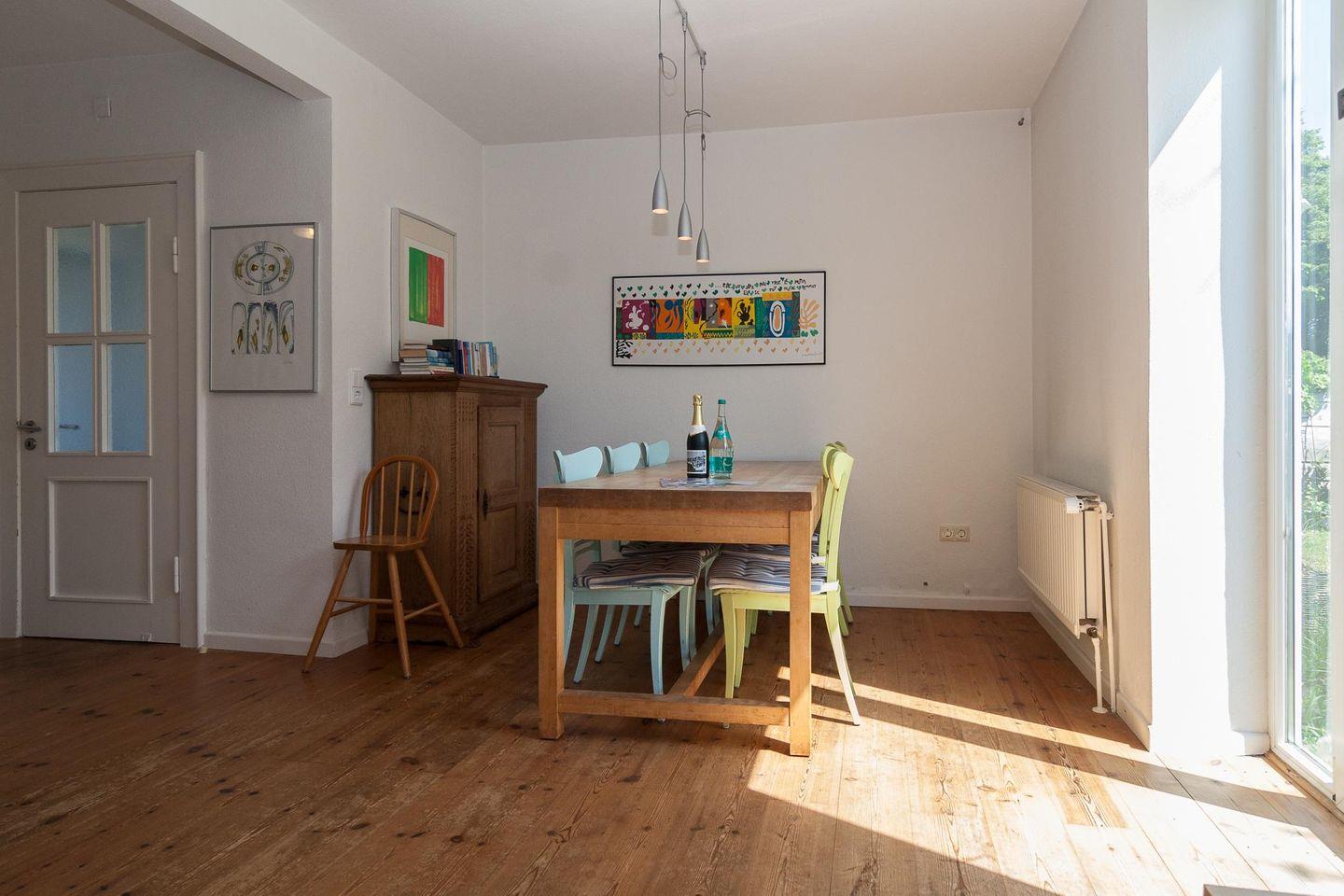 Die Räume sind hell und freundlich eingerichtet. Drei Schlafzimmer bieten Familien bis zu acht Personen ausreichend Platz. Das Badezimmer im Obergeschoss wurde gerade komplett erneuert. Stilvolle Doppelhaushälfte (ca. 90 qm) mitten in Hörnum und doch ruhig gelegen, oben auf dem Kamm einer Düne (Zugang über eine Treppe), mit Blick auf Leuchtturm und Meer. Besuchen Sie uns im wunderschönen Hörnum - Gerne erwarten wir Ihre Anfrage