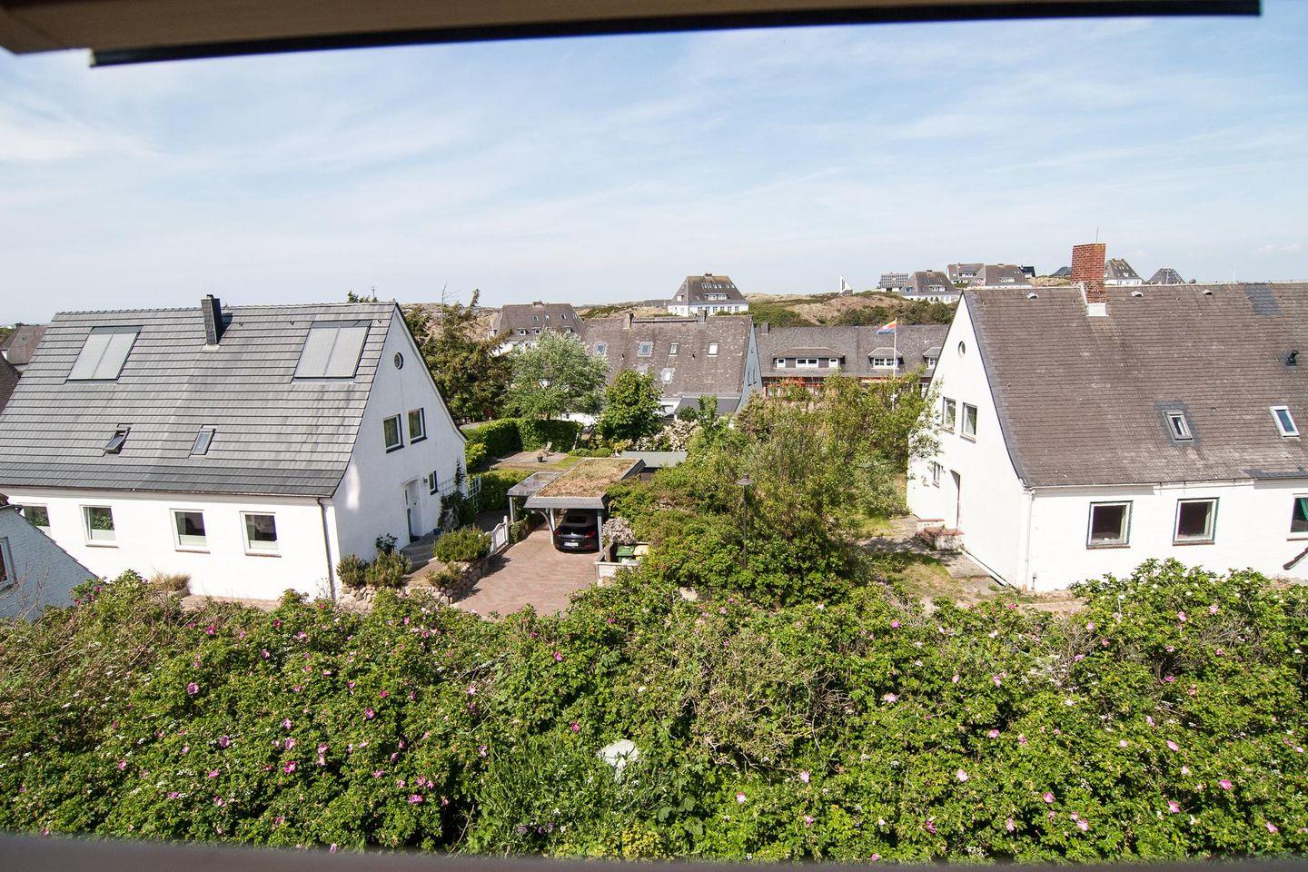 Stilvolle Doppelhaushälfte (ca. 90 qm) mitten in Hörnum und doch ruhig gelegen, oben auf dem Kamm einer Düne (Zugang über eine Treppe) , mit Blick auf Leuchtturm und Meer. In diesem Doppelhaus sind keine Haustiere erlaubt !
