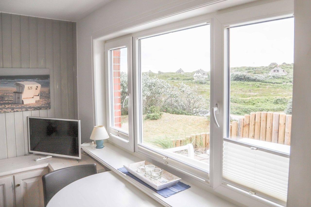 Kleiner Bungalow in fantastischer Alleinlage mit großer Südwest-Terrasse lädt zum Verweilen ein. Der Seelöwe liegt, auf einer urwüchsigen Düne zwischen Ort und Stränden und bietet einen herrlichen Blick auf das Naturschutzgebiet der Hörnum Odde.