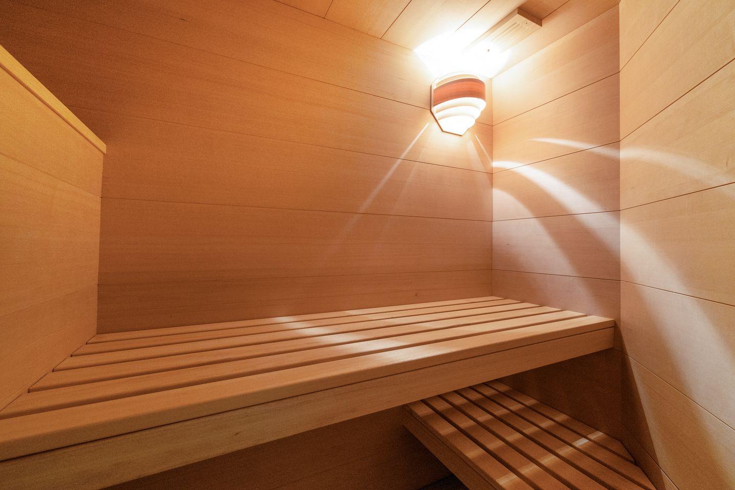 Im Untergeschoss haben Sie eine Sauna zum entspannen, sowie den direkt angrenzenden Schlafraum mit Doppelbett (200x200cm) und großzügigem Kleiderschrank. Ihr Bad mit ebenerdiger Dusche und WC befindet sich im gleichen Geschoss.