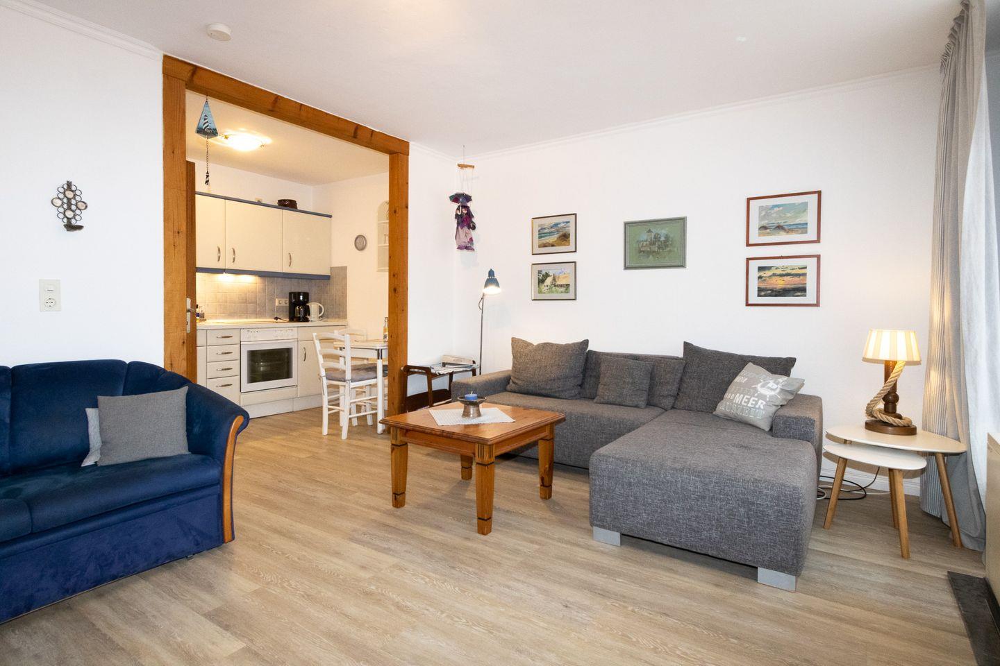 Die Wohnung Ewald ist für 2 Personen sehr gut geeignet. Vom großzügigen Wohnraum gelangen Sie auf den geräumigen Balkon. Das Schlafzimmer befindet sich direkt hinter dem Wohnzimmer. Der Strand, Hafen und auch die Einkaufsmöglichkeiten sind gut zu Fuß in wenigen Minuten zu erreichen. Im Wohnbereich gibt es eine gemütliche Couchgarnitur mit TV. Die Küchenzeile grenzt direkt an dem Wohnbereich an und ist mit sämtlichem Zubehör ausgestattet und enthält neben Cerankochfeld und Backofen auch einen Geschirrspüler.