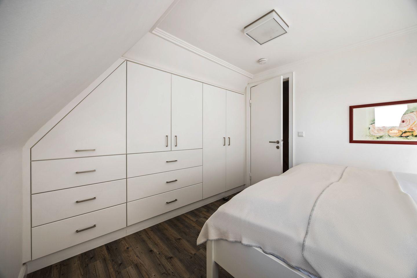 Im Obergeschoss erwarten Sie zwei gemütliche Schlafzimmer – eines mit einem großen Doppelbett (180 cm) und das andere mit zwei Einzelbetten (je 90 cm). Beide sind mit komfortablen Matratzen ausgestattet. Auch hier finden Sie ein modernes Badezimmer mit Dusche.