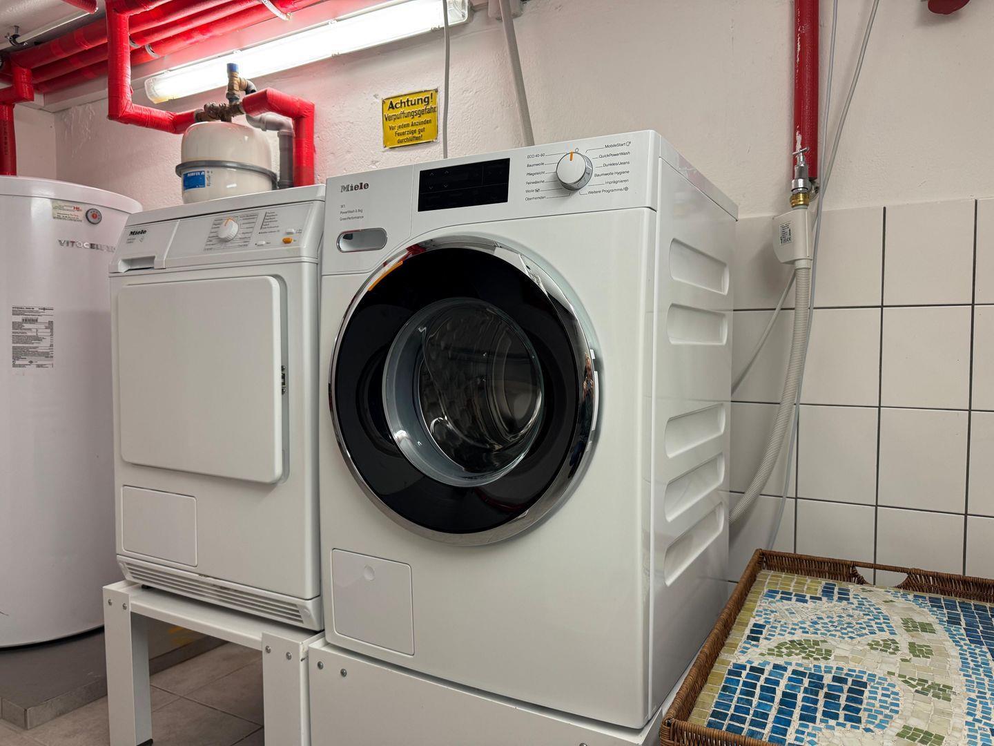 Praktisch und durchdacht ist auch der Keller des Hauses, in dem eine Waschmaschine und ein Trockner zur Verfügung stehen. Ein eigener Stellplatz auf dem Grundstück sorgt für eine bequeme Anreise und Mobilität während Ihres Aufenthalts.