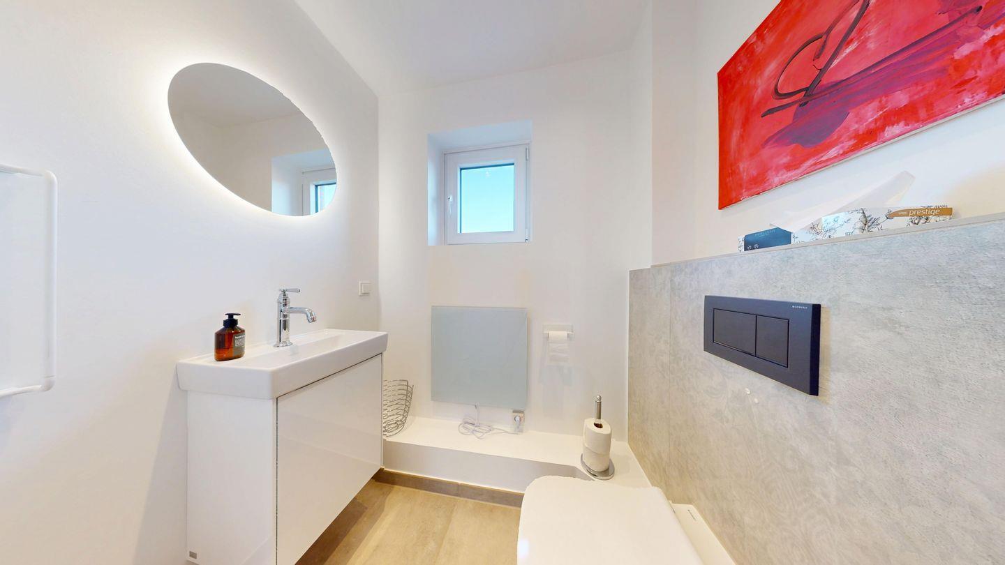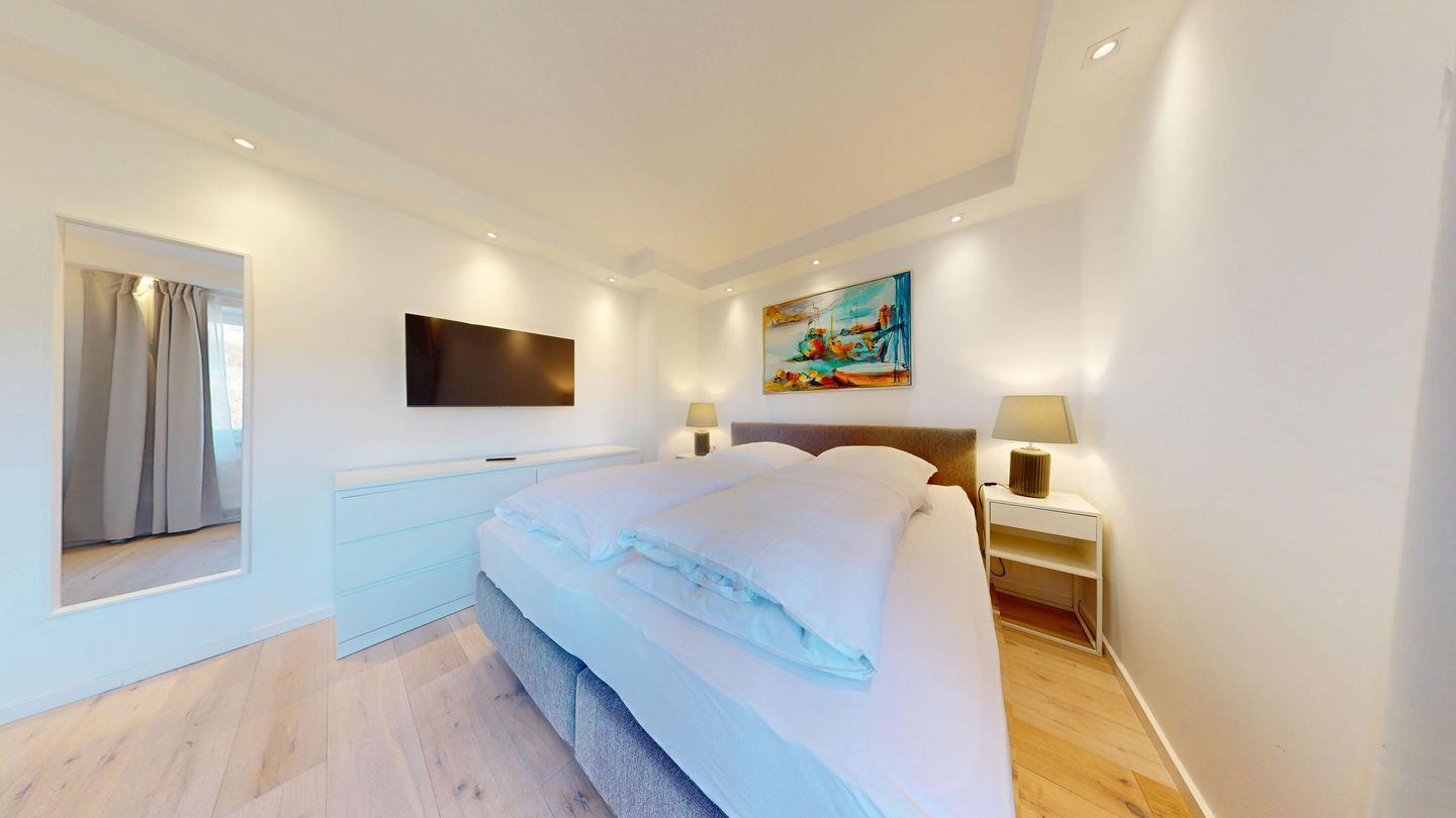 Die Wohnung bietet Platz für bis zu vier Personen und befindet sich im Hochparterre. Die durchdachte Raumaufteilung sorgt für eine angenehme Wohnatmosphäre: Ein helles Wohnzimmer mit Essbereich geht in eine offene, moderne Küche über, die mit einem hochwertigen BORA-Kochfeld ausgestattet ist – perfekt für gemeinsame Kochmomente. Ein separates Schlafzimmer lädt zum Entspannen ein, während ein zusätzliches Zimmer mit einer bequemen Schlafcouch flexibel nutzbar ist. Das große Tageslichtbad mit Regendusche sorgt für Wellness-Feeling, und ein zusätzliches Gäste-WC ist auch vorhanden.