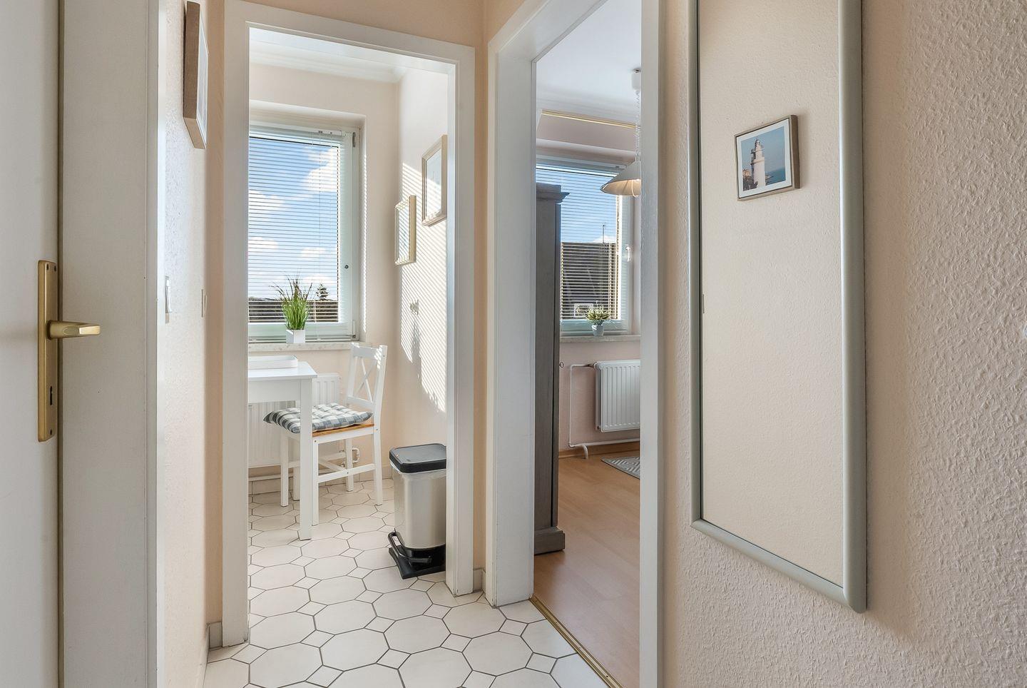 Besonders: Das Apartment liegt im ersten Stock und bietet einen herrlichen Blick über die Dünen. Direkt darunter befindet sich das baugleiche Apartment „Ebbe“, über dasselbe Treppenhaus erreichbar. Auch die Wohnung "Inselkoje" befindet sich im selben Hauseingang. Perfekt für gemeinsame Aufenthalte mit Familie oder Freunden.