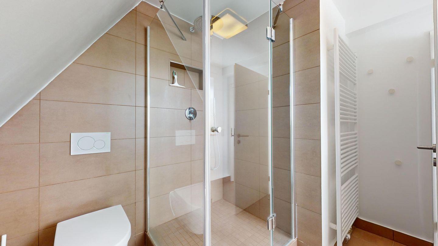 Im ersten Stock erwarten Sie zwei Schlafzimmer mit Kleiderschränken, ein Gäste-WC sowie das Hauptbadezimmer mit Dusche.