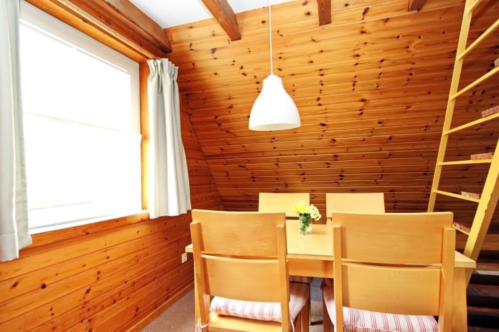 Die Ferienwohnung wird Holzwohnung genannt, weil sie mit Holz verkleidet ist und sehr wohnlich wirkt. Sie hat ein großes Wohnzimmer mit Kochnische und ein kleines Schlafzimmer für zwei Personen. Das Duschbad befindet sich neben dem Apartment. Farb TV-Sat und Mikrowelle, eine Waschmaschine und ein Wäschetrockner steht den Gästen im Keller des Hauses gegen eine Gebühr zur Verfügung.