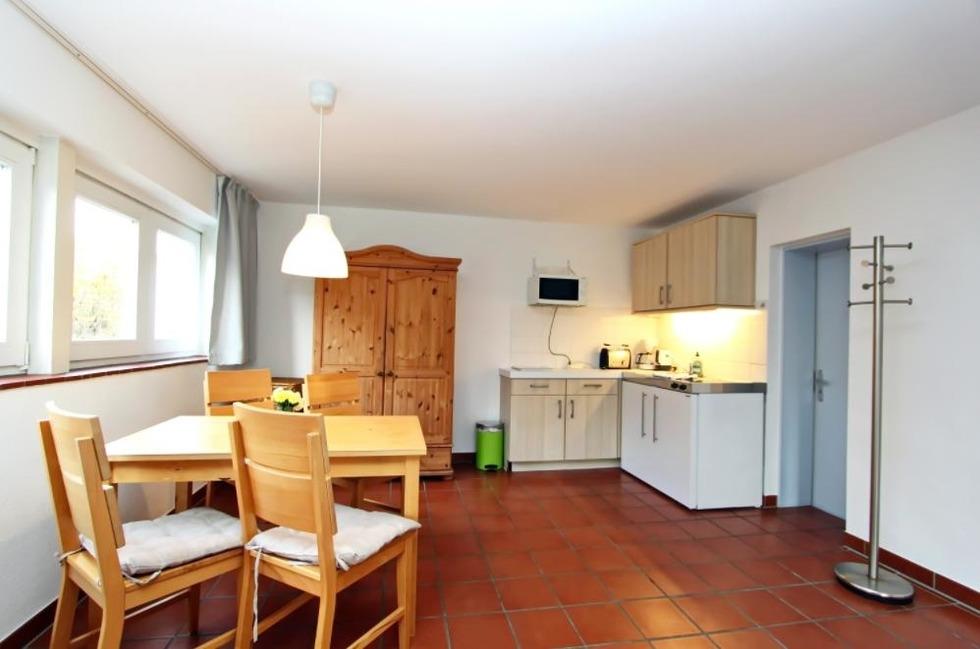 Die Wohnung Nr. 4 (für zwei bis vier Personen) befindet sich nach hinten heraus im Hochparterre des Hauses ATLANTIS. Die Wohnfläche beträgt ca 50 qm.