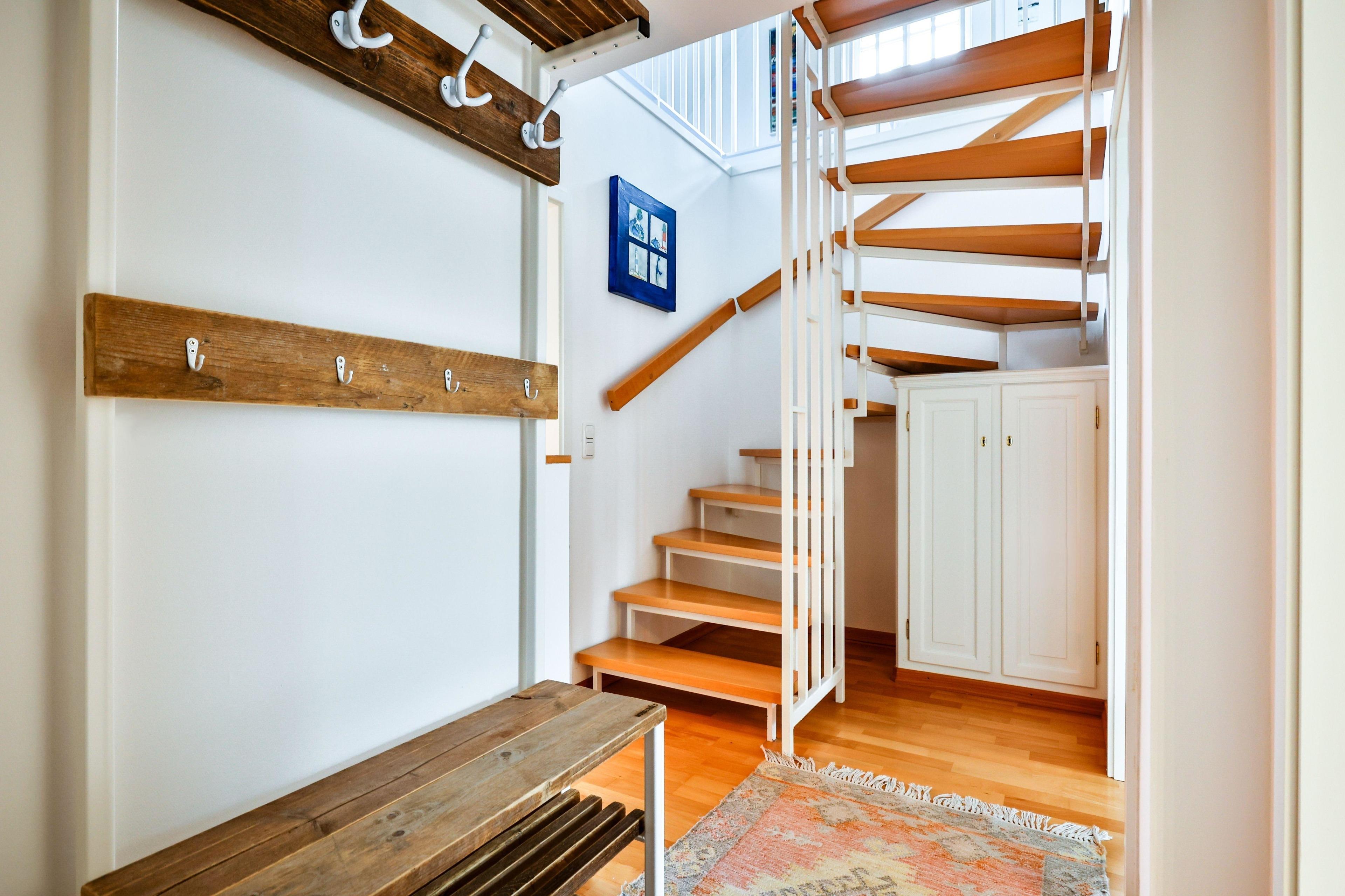 Zur Sicherung der Kinder sind alle Steckdosen gesichert. Die Wendeltreppe ist jeweils mit 2 Schutztüren gesichert. Ein Hochstuhl ist vorhanden.
